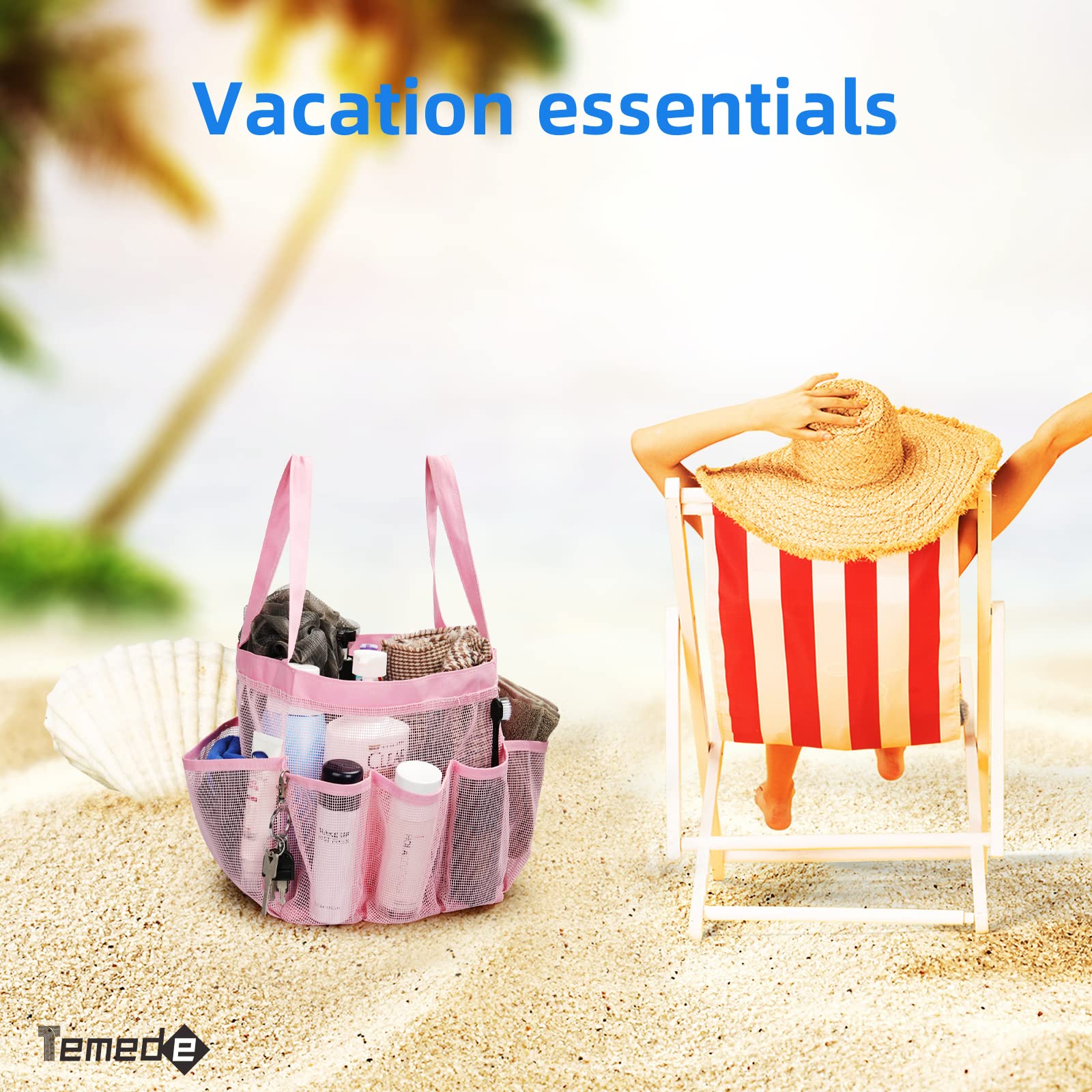 Temede Mesh Shower Caddy Tote, Large Shower Caddy Basket Portable, Quick Dry Hanging Toiletry Bag, 8 Storage Pocket Bath Organizer for College Dorm, Gym, Camp, Travel (Pink)