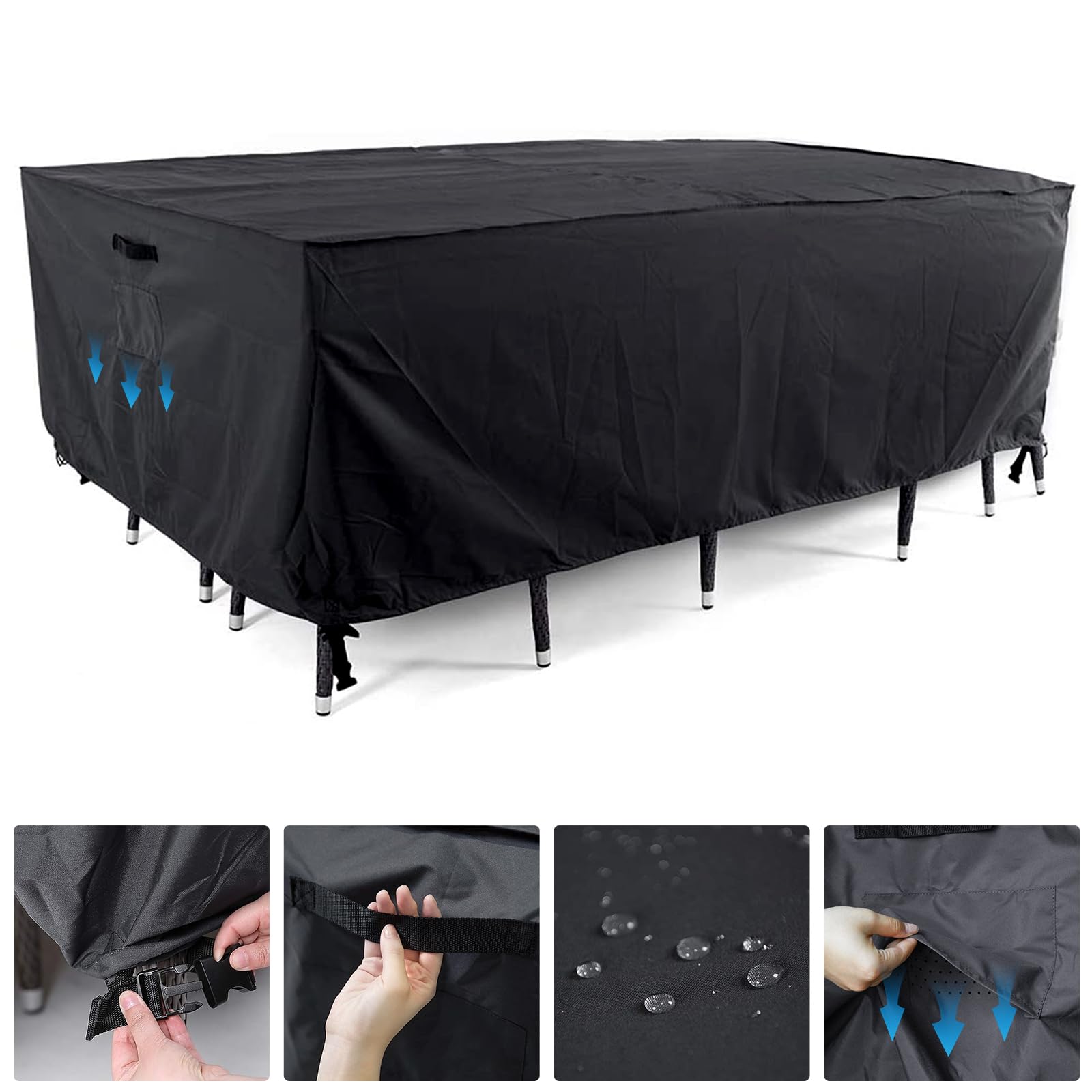Tempera Outdoor Dining Set Cover for Outside Table and Chairs, Square Patio Table Covers for Outdoor Furniture, Anti-Fading, Windproof, 102''L x 74''W x 27.8''H, Space Grey
