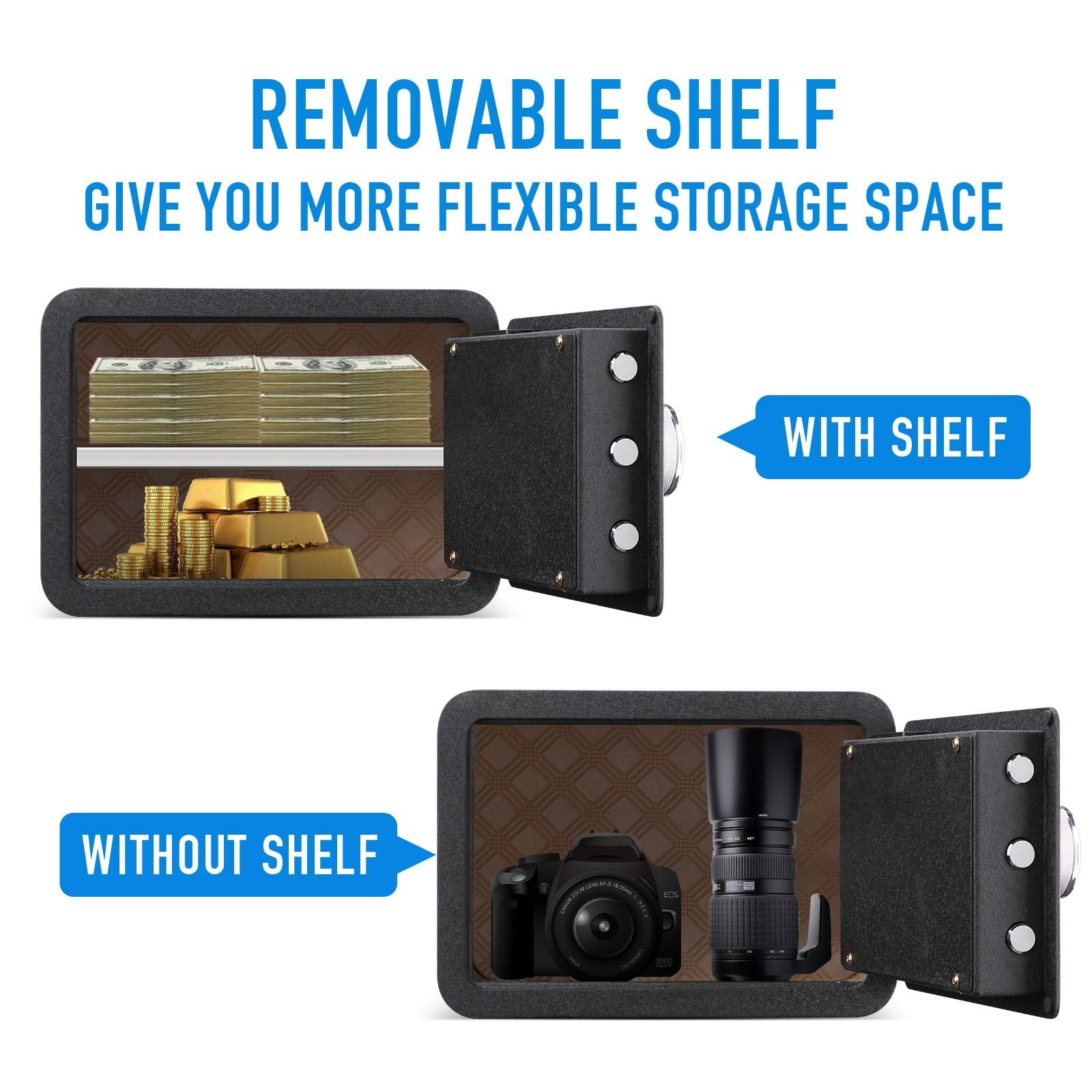 • ✅【STRONGER MATERIAL】: Tenamic safe box is made of the better solid steel. Special ripple coating has been used to the surface for better protection against wear and corrosion. This security safe has a pry-resistant steel door and concealed pry-resistant hinges to offer you complete peace of mind. It ensures that your cabinet safe is stronger and more durable. If necessary, you can fix it on the wall or the ground.