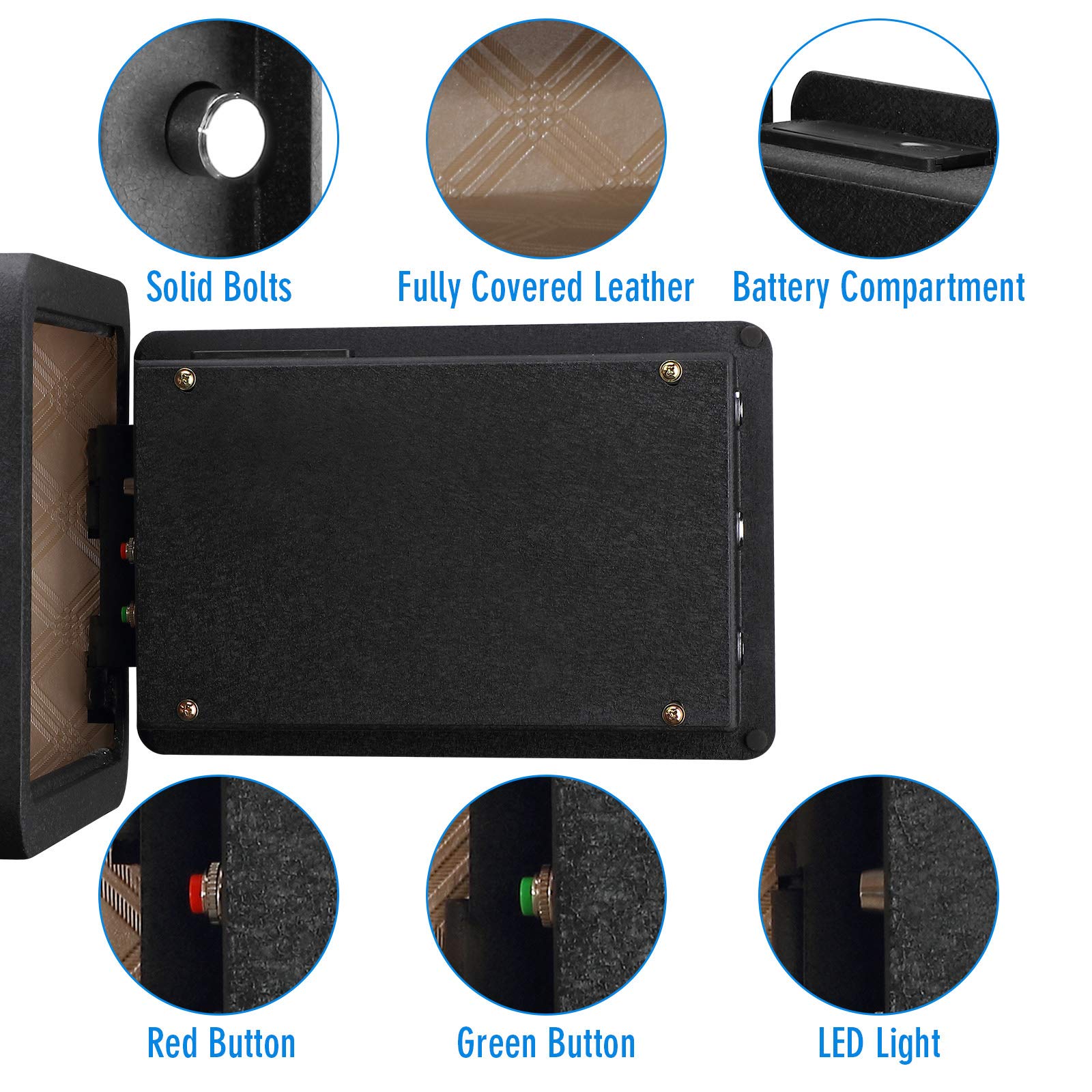 • ✅【BETTER CONFIGURATION】: Tenamic security box has the newest design. As soon as you open the box, the light will light up, and it will automatically go out after 30 seconds. Not only that, the inside of the safe is covered with leather, it can prevent your valuables from being worn out.