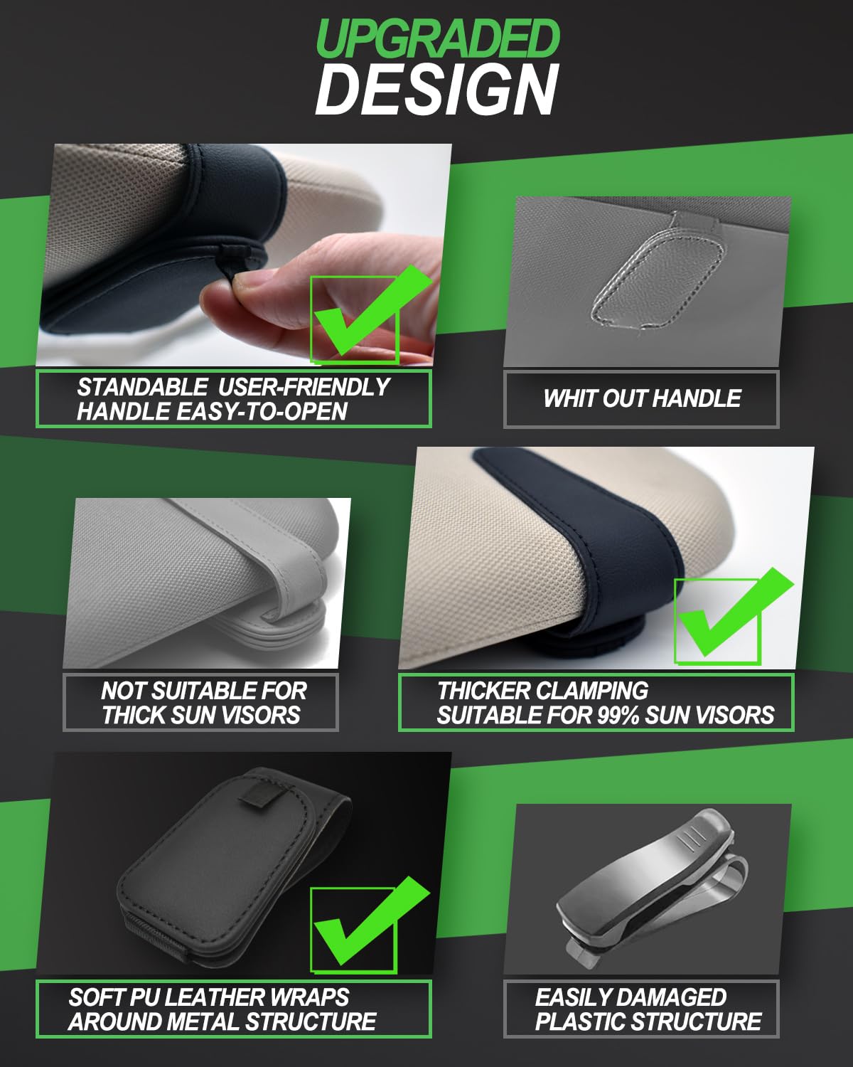 • High Quality: The sunglass holder for car visor clip is made of metal, wrapped by soft leather, which prevents your eye glasses and sun visor from scratches. Neutral color blends in well with car interior.