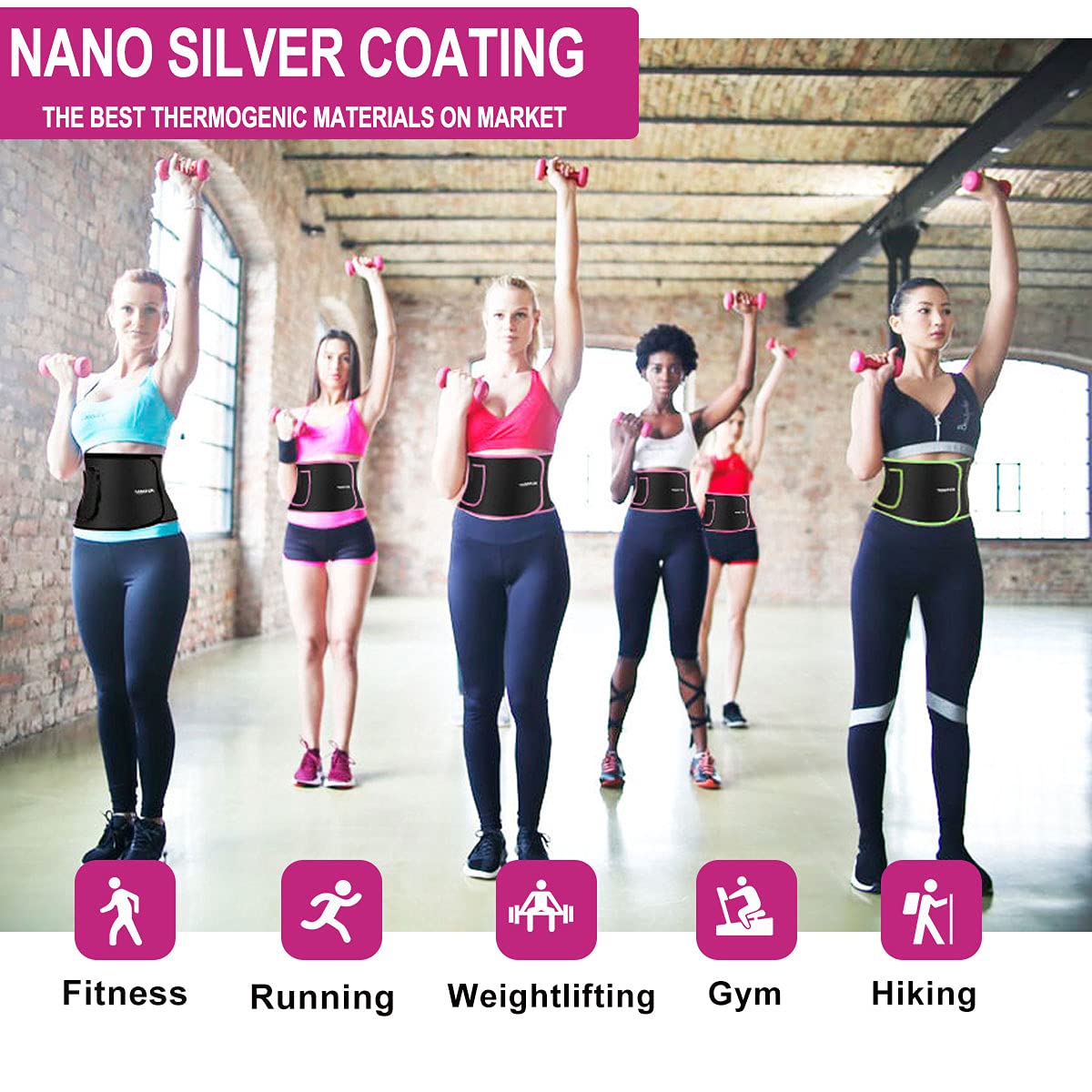 • ✅ SWEAT FASTER, HARDER AND EASY TO CLEAN: TESETON waist trimmer for women and men features Nano-Silver material, which could help you sweat faster and harder than an ordinary sweat belt. This sweat band for weight loss enables your body to sweat off excess water and maintain an optimal body temperature in the abdominal area, assisting in fat loss and improved calorie burning during exercise. The nano-silver material is easy to clean and never hides any sweat and dirt.