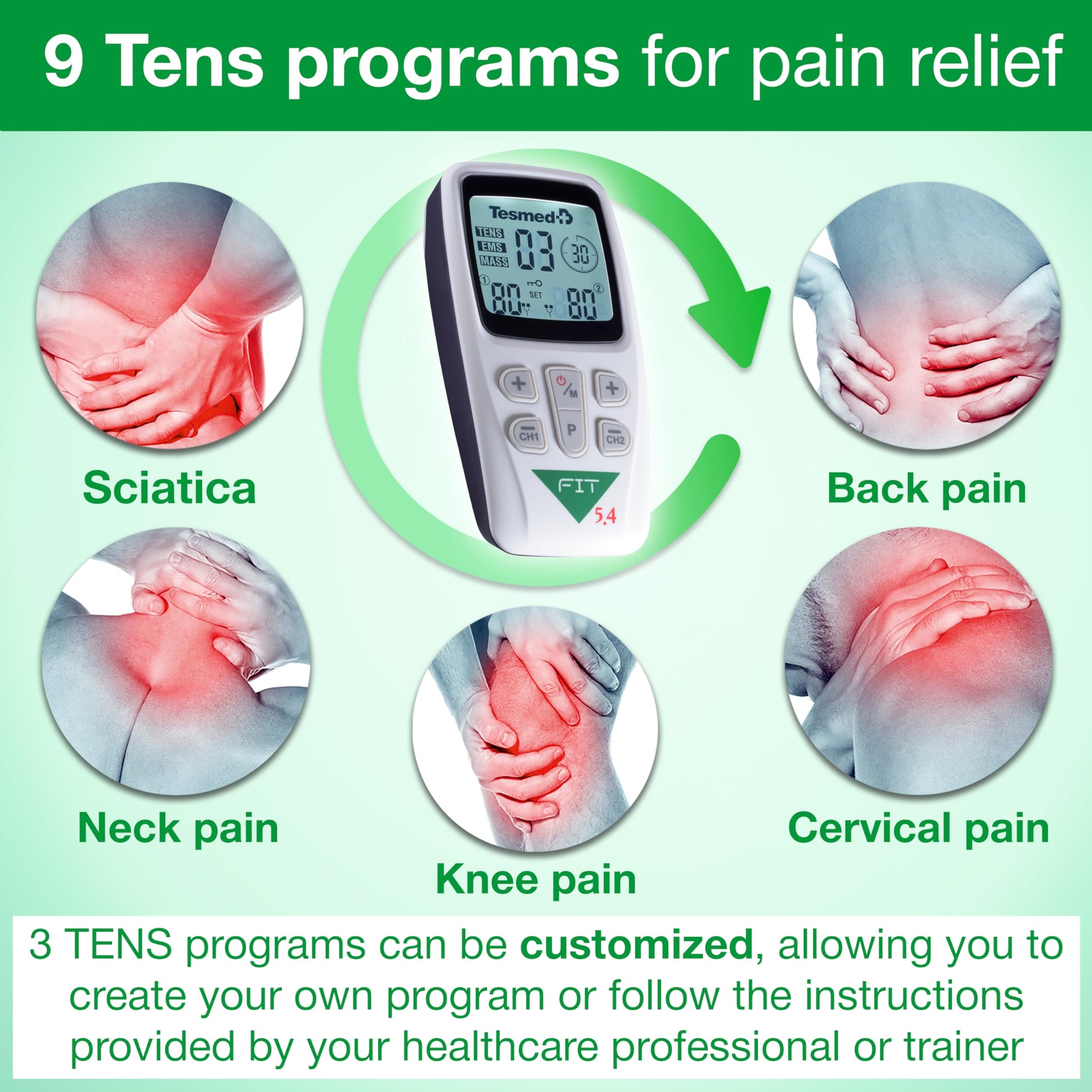 TESMED Fit 5.4: TENS Unit, EMS Muscle Stimulator & Muscle Massager (3-in-1), 22 Programs, 6 Customizable, Ideal for Pain Relief and Muscle Stimulation, 4 Electrodes