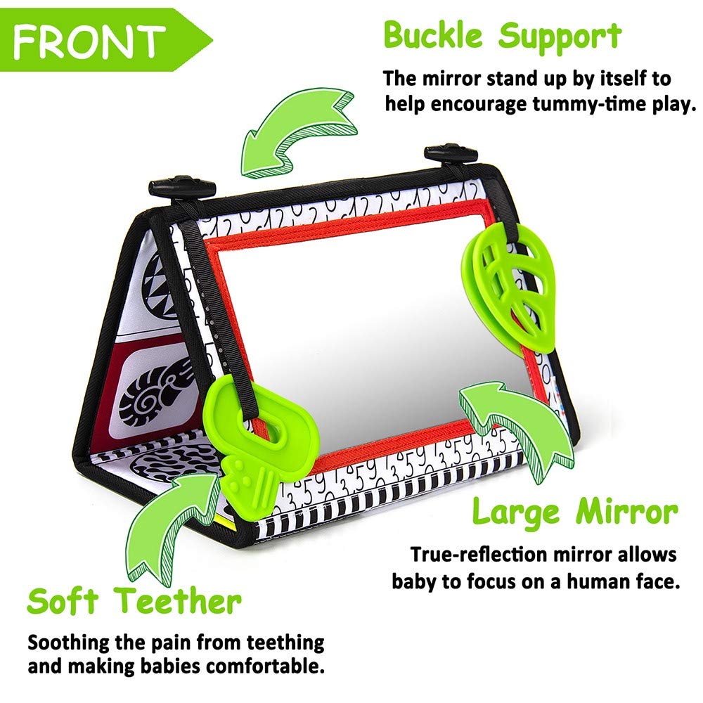 • ★ CAPTURING YOUR CHILD'S ATTENTION JUST GOT A LOT EASIER - Baby 2-in-1 Crib & Floor Mirror,The Play Activity Mirror invites your child to explore their own image or to experiment with different tactile textures. Baby Black and White toys are the perfect sensory toy for babies.
