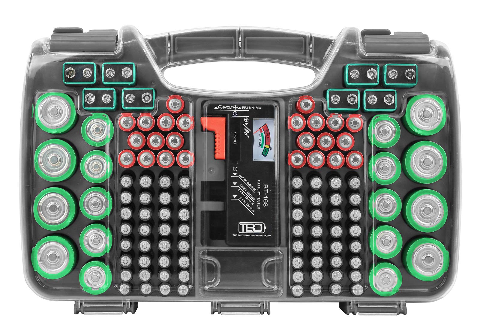 • Expanded Battery Organizer Case – This versatile, portable batteries organizer holds 180 total batteries, including 78 AA, 64 AAA, eight 9-volt, 10 C, 8 D, and 12 flat batteries!