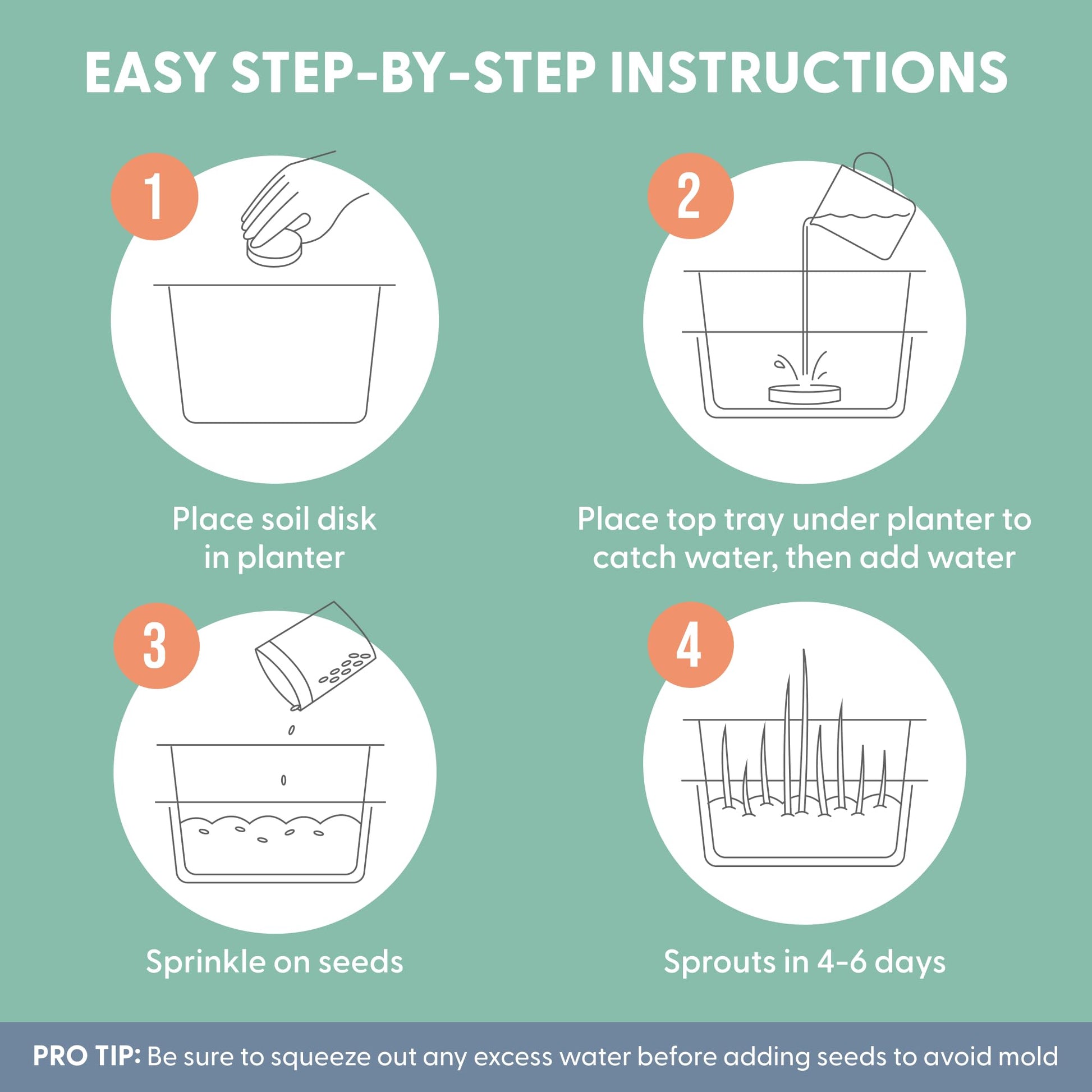 • Cat Plant Magic: Add a soil disk, a splash of water, and a sprinkling of seeds, and watch your cat grass planter kit sprout like magic. Read our Cat Ladies insert for easy-to-follow instructions and growing tips, and watch your organic cat grass sprout up to 4” in just 4–7 days. No green thumb required.