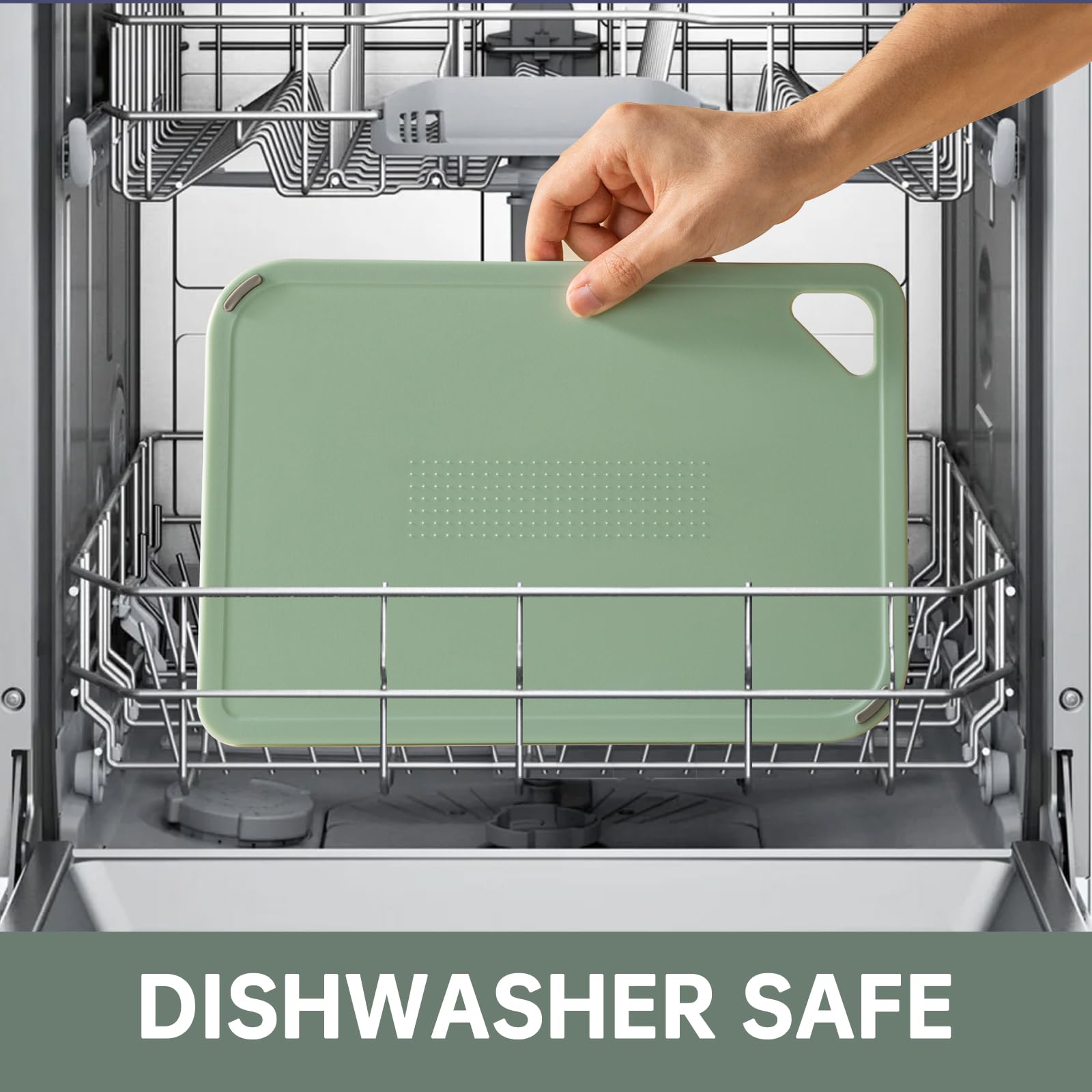 • EASY TO CLEAN AND CONVENIENT USE: Our kitchen chopping boards are BPA-free, so they can be directly put into the dishwasher after use. Or wash them by hand with soap as your needed to easily remove stains. Each green cutting board is equipped with a triangular handle for easy access and storage, and can also be hung in your camper or truck for use.