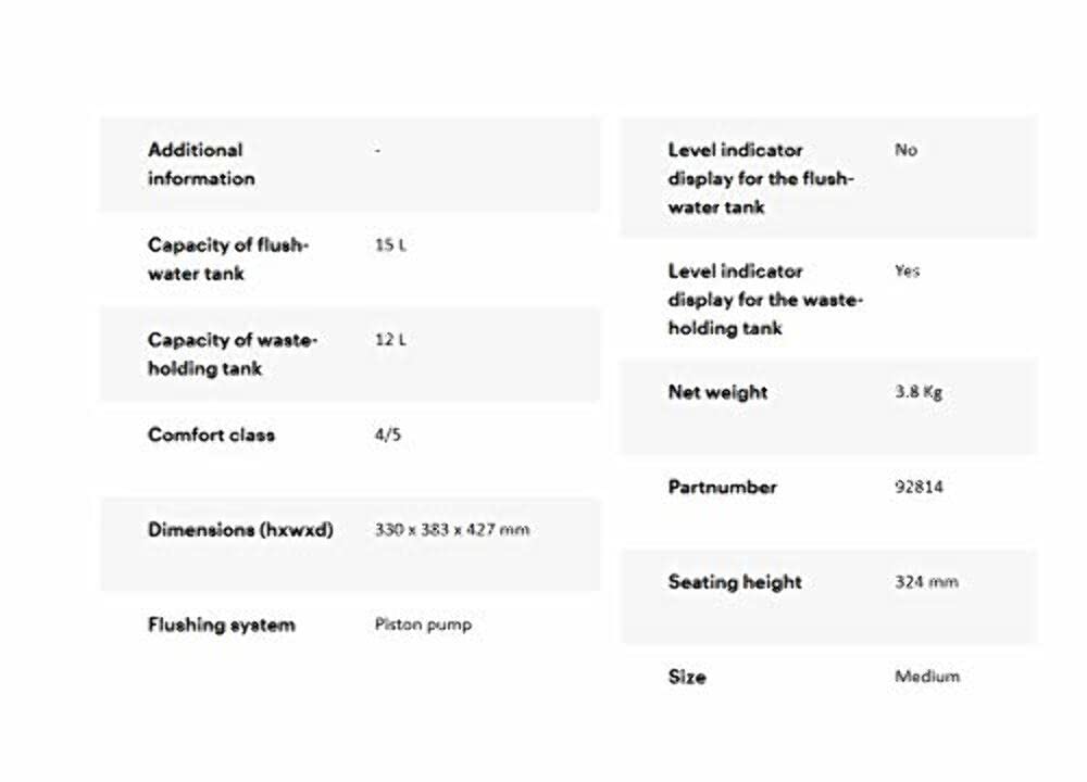 • Design: ergonomic handle makes it easy to maneuver. The compact toilet comes with an easy-to-use piston flush