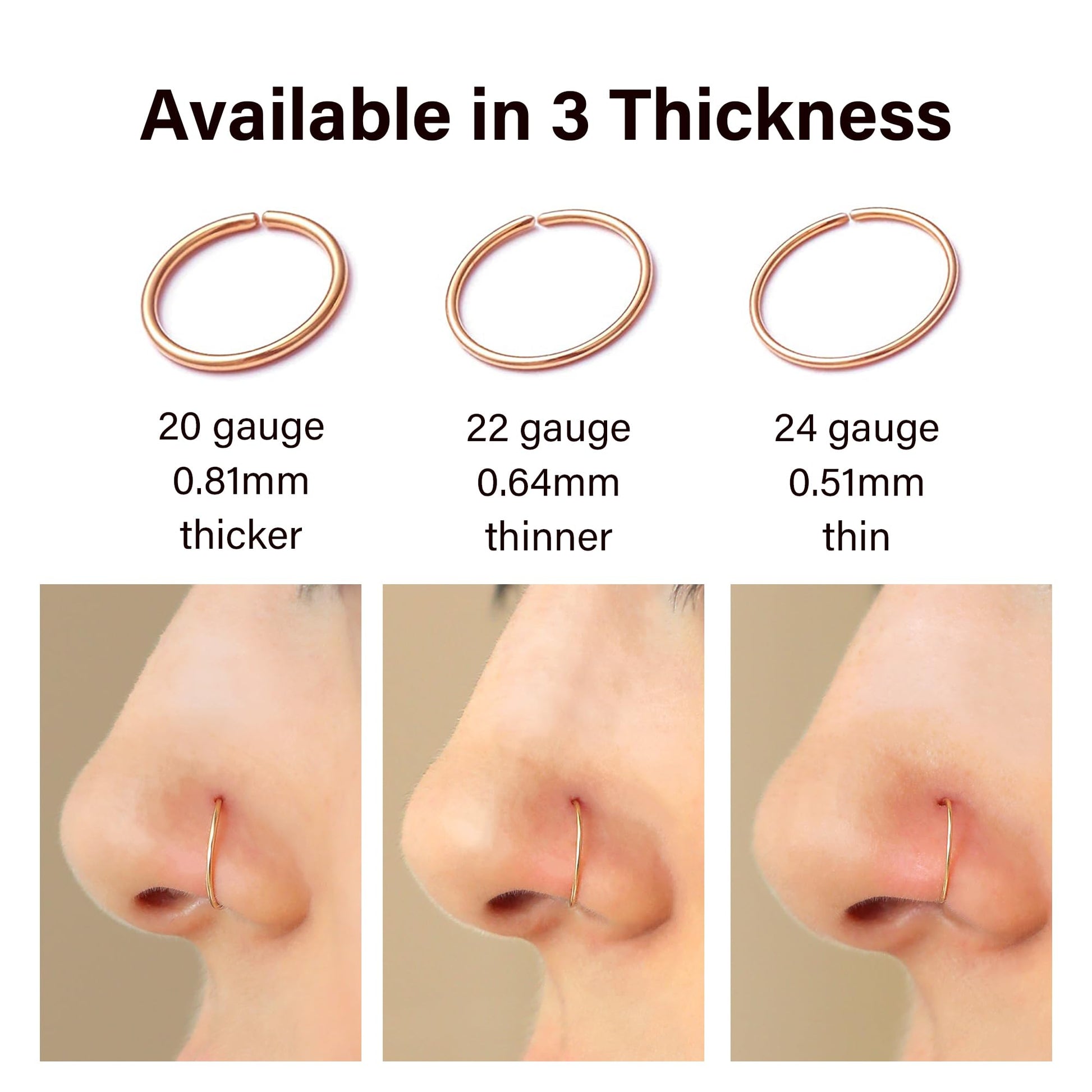 • 【Handmade Nose Hoop Rings】: Our gold nose rings are carefully crafted by hand, and the ends are polished to prevent scratching your nose. Simply twist it gently, you can easily put the nose hoop ring into your nose piercing.