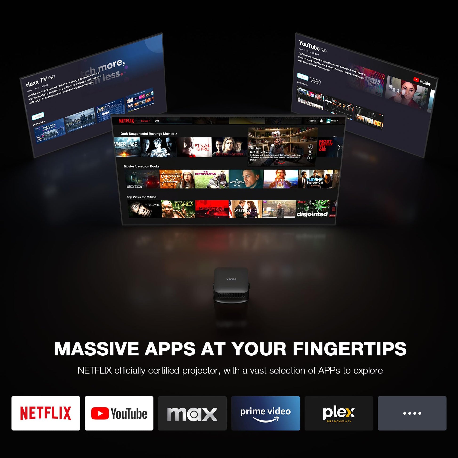 • 【Officially Licensed by Netflix, No Extra Devices Needed】This isn’t just a projector—it’s your 'Hollywood Digital Pass.' Instantly access a global library with pre-installed Netflix/YouTube/Prime Video, offering 1000,000+ titles at your fingertips. Enjoy officially licensed Netflix content, secure and regularly updated, with stunning 4K HDR clarity.