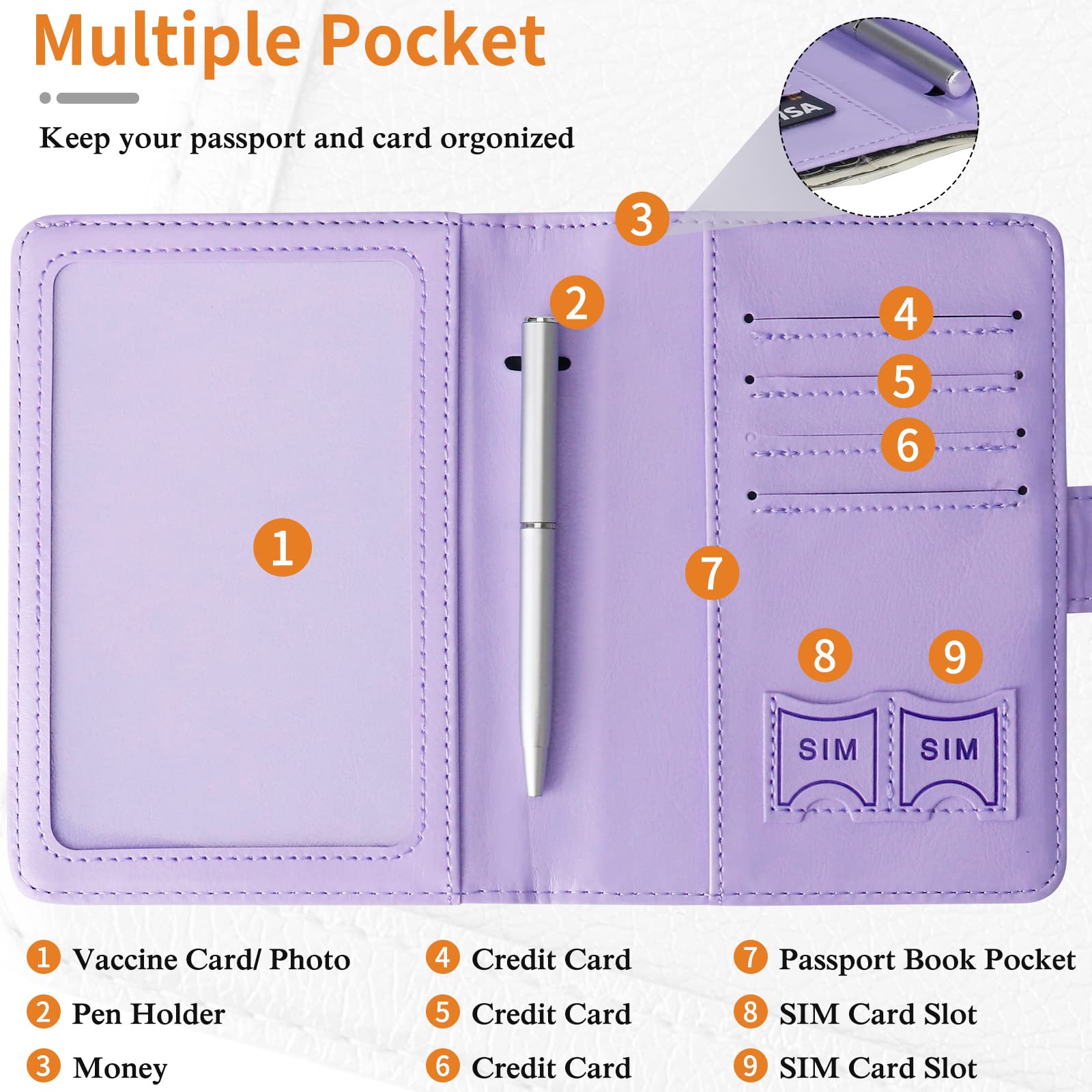 TIGARI Passport Holder for Travel Women Men, PU Leather Waterproof RFID Passport Holder Wallet Cover Case Sleeve, Family Vacation Plane Cruise Travel Document Organizer Essentials-Purple