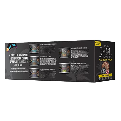 Tiki Cat After Dark, Variety Pack, High-Protein and 100% Non-GMO Ingredients, Wet Cat Food for Adult Cats, 5.5 oz. Cans (Pack of 8)