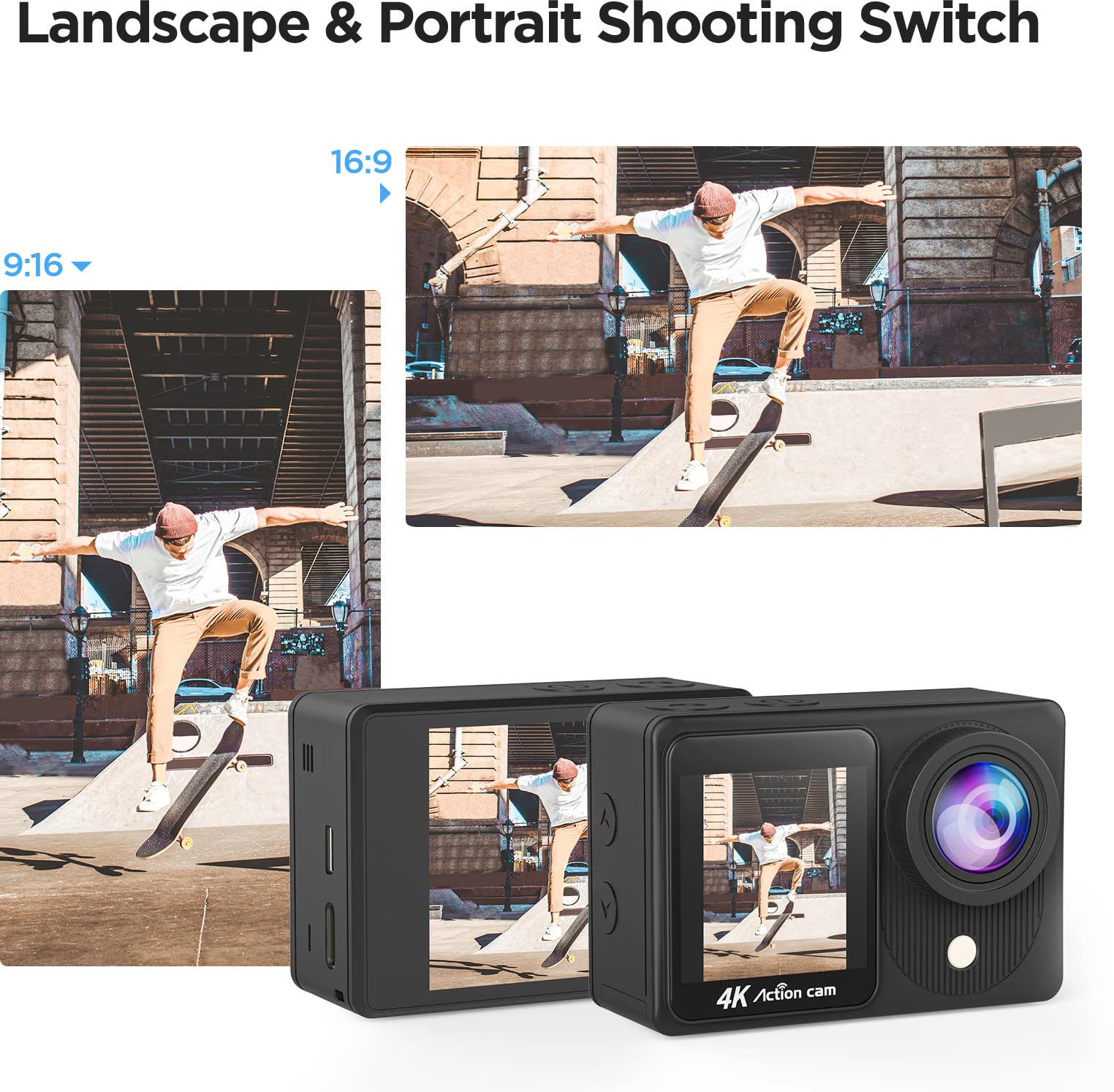 • EIS Stabilizer & Adjustable View Angle: You do not need to pan around and scan the entire horizon like you would with a traditional camera, now you just need to press one button! The action camera will take a beautiful 170-degree panorama photo without any sort of distortion.When doing strenuous activity, the video is still silky smooth, and it's easy to capture the dynamic and wonderful moments of the activity.