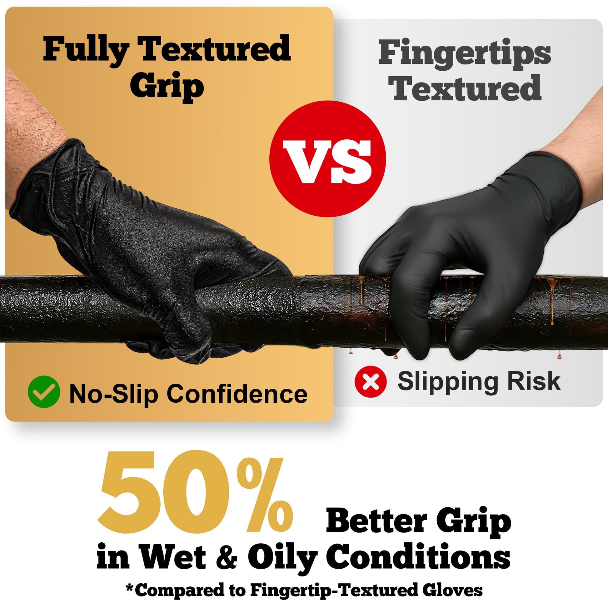 • Superior Material: Our 6 mil nitrile gloves are made from high-quality nitrile, providing a more durable and comfortable alternative to latex gloves and vinyl gloves, perfect for mechanics, cleaners, and food prep professionals.
