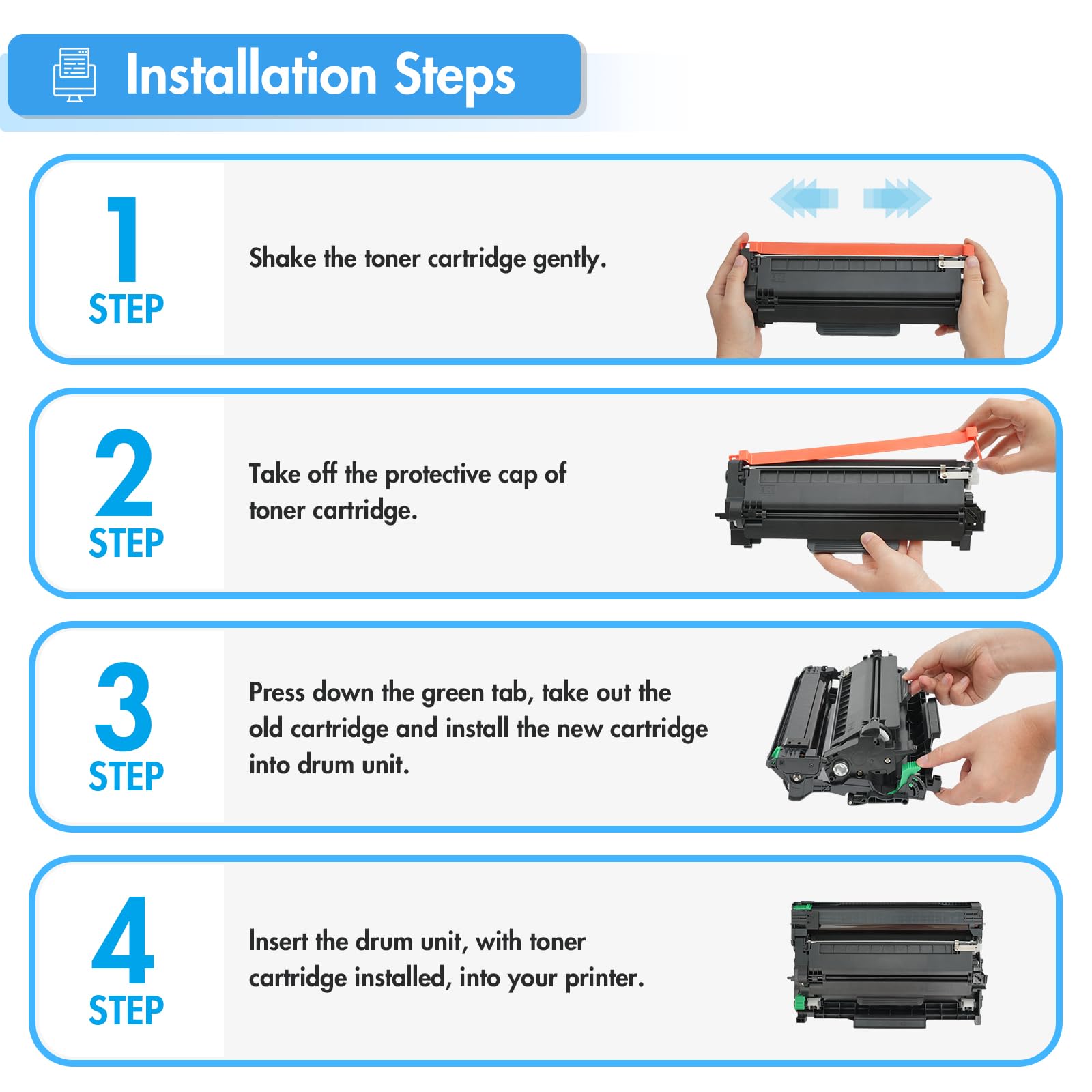 • Compatible for Brother Printer: MFC-L2710DW MFC-L2730DW MFC-L2750DW MFC-L2750DWXL; DCP-L2550DW; HL-L2350DW HL-L2370DW HL-L2370DWXL HL-L2390DW HL-L2395DW