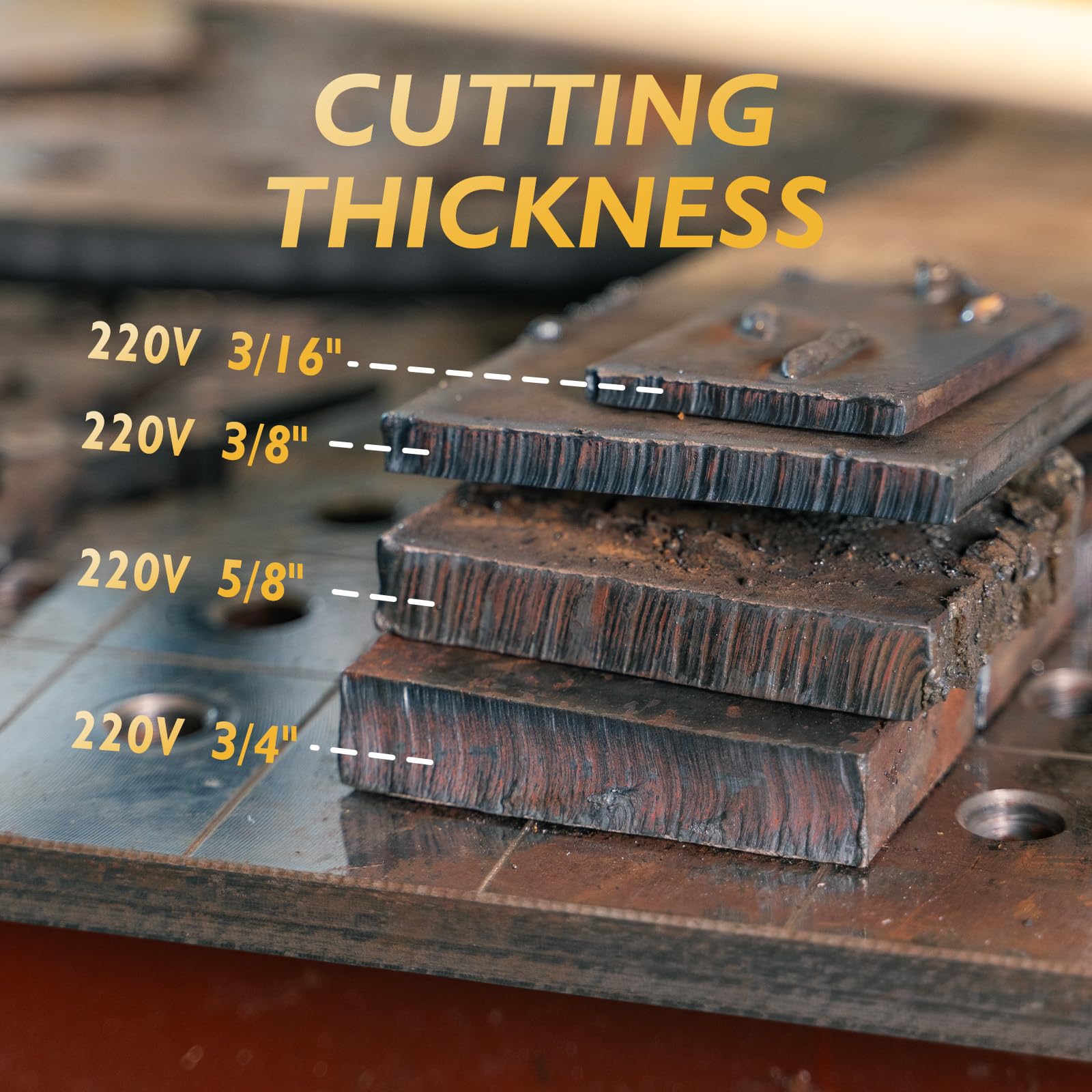 • Up to 50A, the maximum severance cut can reach up to 3/4' (20 mm), 3/8' (10mm) ideal clean cut.