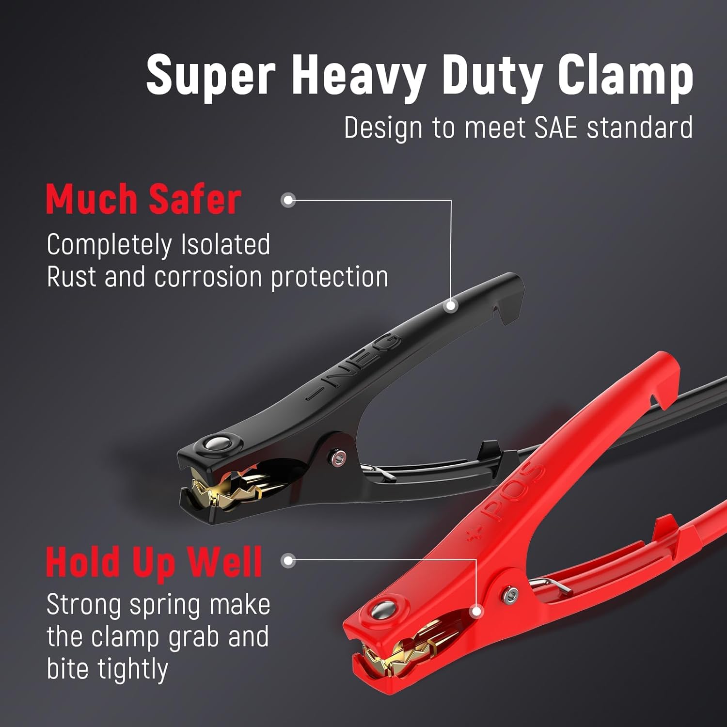 • Strong And Safe Clamps: The TOPDC Jumper Cables booster cable has four giant alligator clamps with strong jagged teeth and springs for excellent grip force. The jaws are strong and make connections easy. And the High Peak Jumper Cables has insulating rubber material to prevent electric shock and protect the safety of users