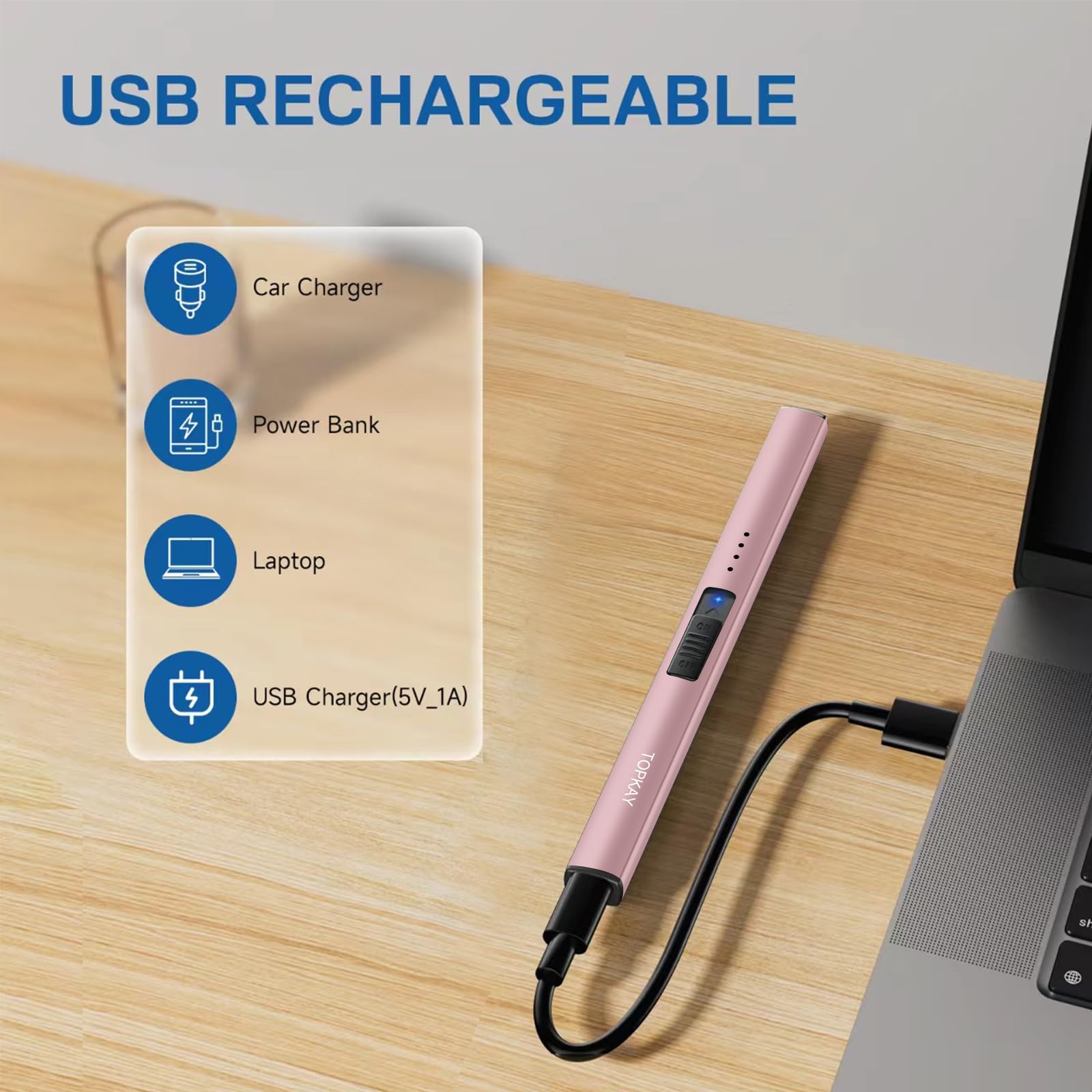 • Convenient USB Rechargeable Design: Say goodbye to refills! This Electric Candle Lighter comes with a built-in large capacity battery and a portable USB charging capability, compatible with various power sources such as computers and power banks.