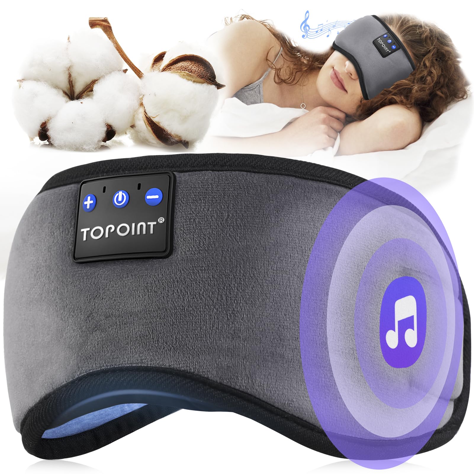 TOPOINT Sleep Mask with Headphones Bluetooth 5.4 Wireless, Sleep Headphones Earphones Earbuds with Microphone HD Speakers Music, Blackout Eye Mask for Sleeping Travel Meditation Men Women Cool Gadgets