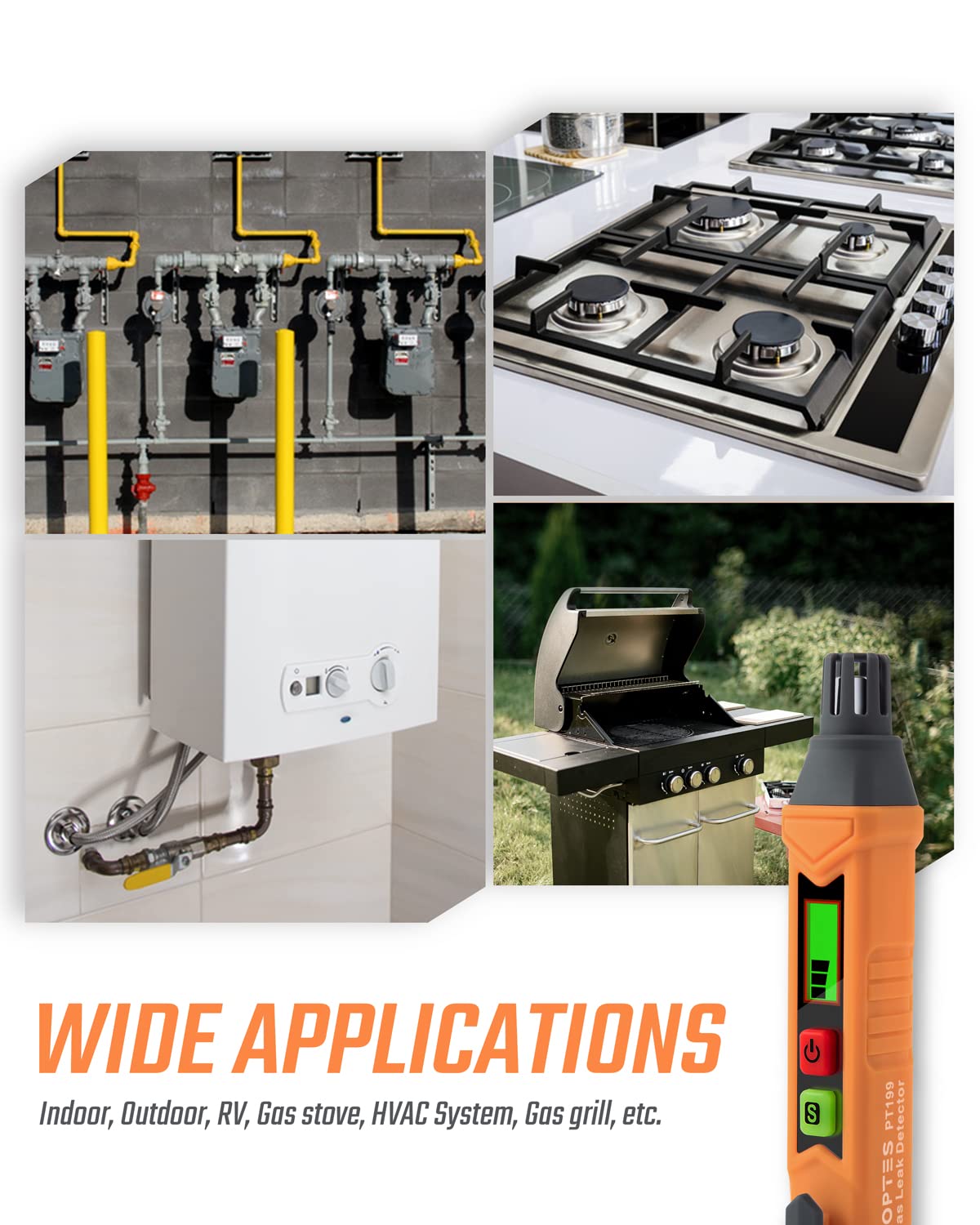 • Combustible Gas Leak Detector: The TopTes PT199 detects natural gas, methane, propane, butane, LPG, and more, pinpointing leaks to reduce the risk of explosion, keeping your family and property safe