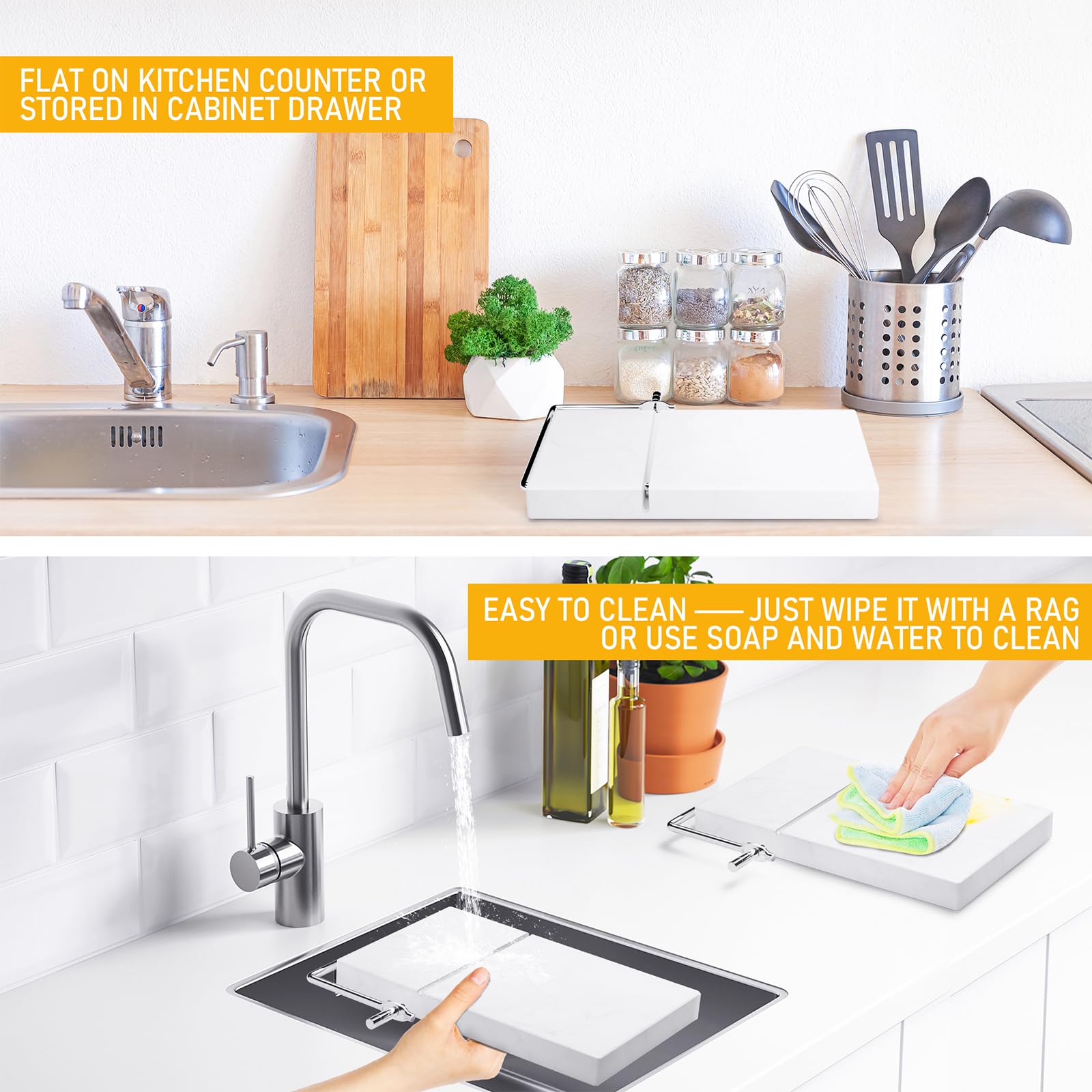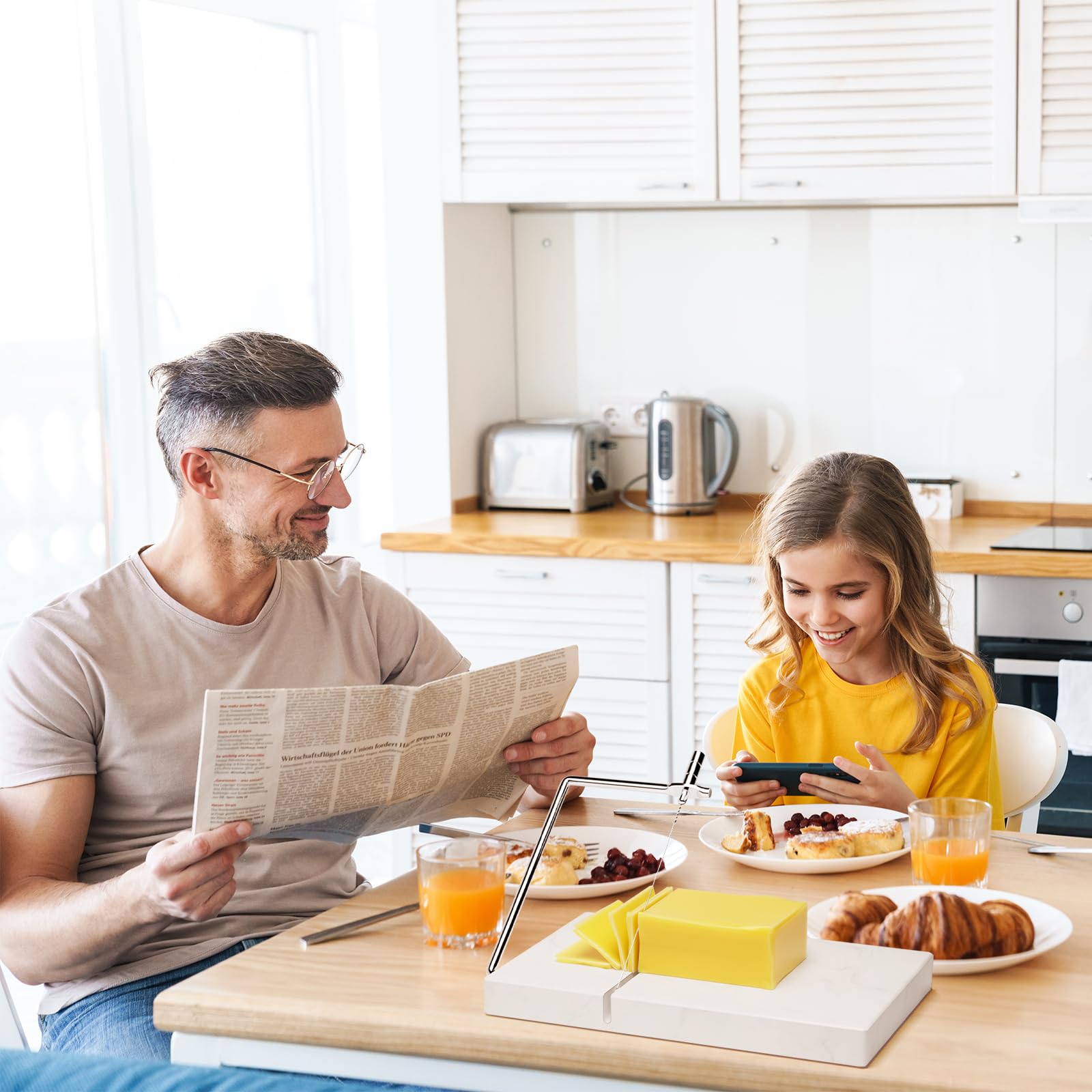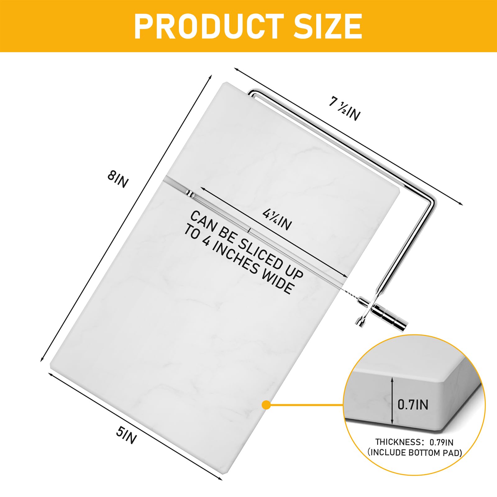 • EASY CHEESE CUTTING MARBLE CHEESE SLICER: Get perfect slices of your favorite cheese with our premium marble cheese slicer. Made with 100% natural marble, it has non-stick qualities for easy food release and effortless clean-up. The cheese cutter is also equipped with 4 anti-slip silicone pads at the bottom for stability and safety.