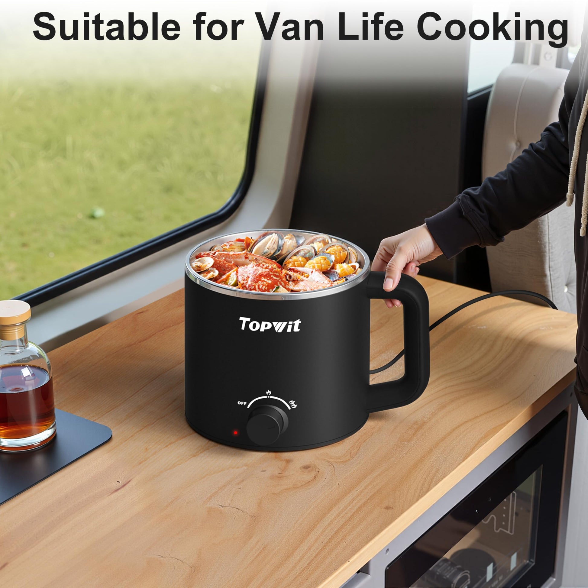 Topwit Hot Pot Electric, Electric Pot, 1.6L Ramen Cooker, Multifunctional Cooker for Pasta, Shabu-Shabu, Oatmeal, Soup and Egg with Over-Heating Protection, Boil Dry Protection, Black