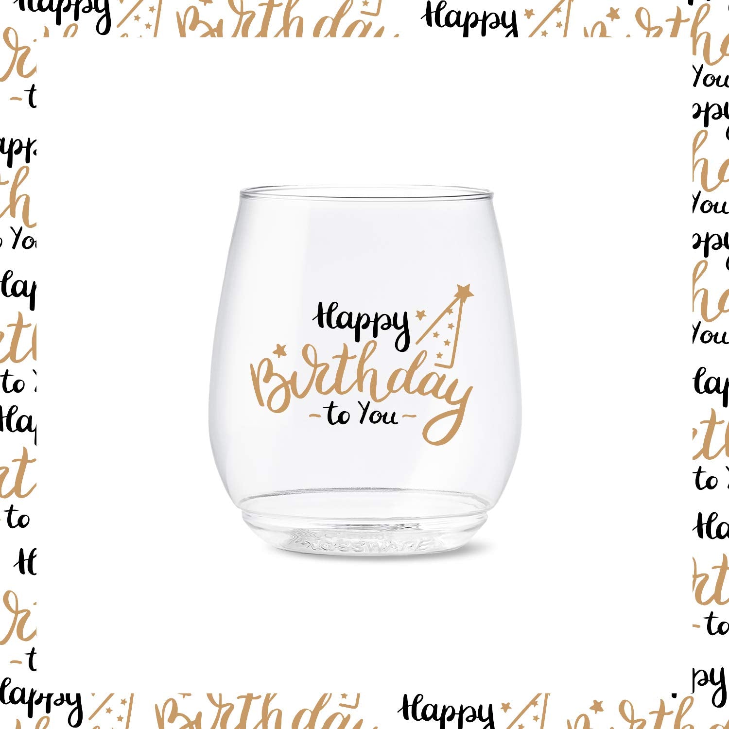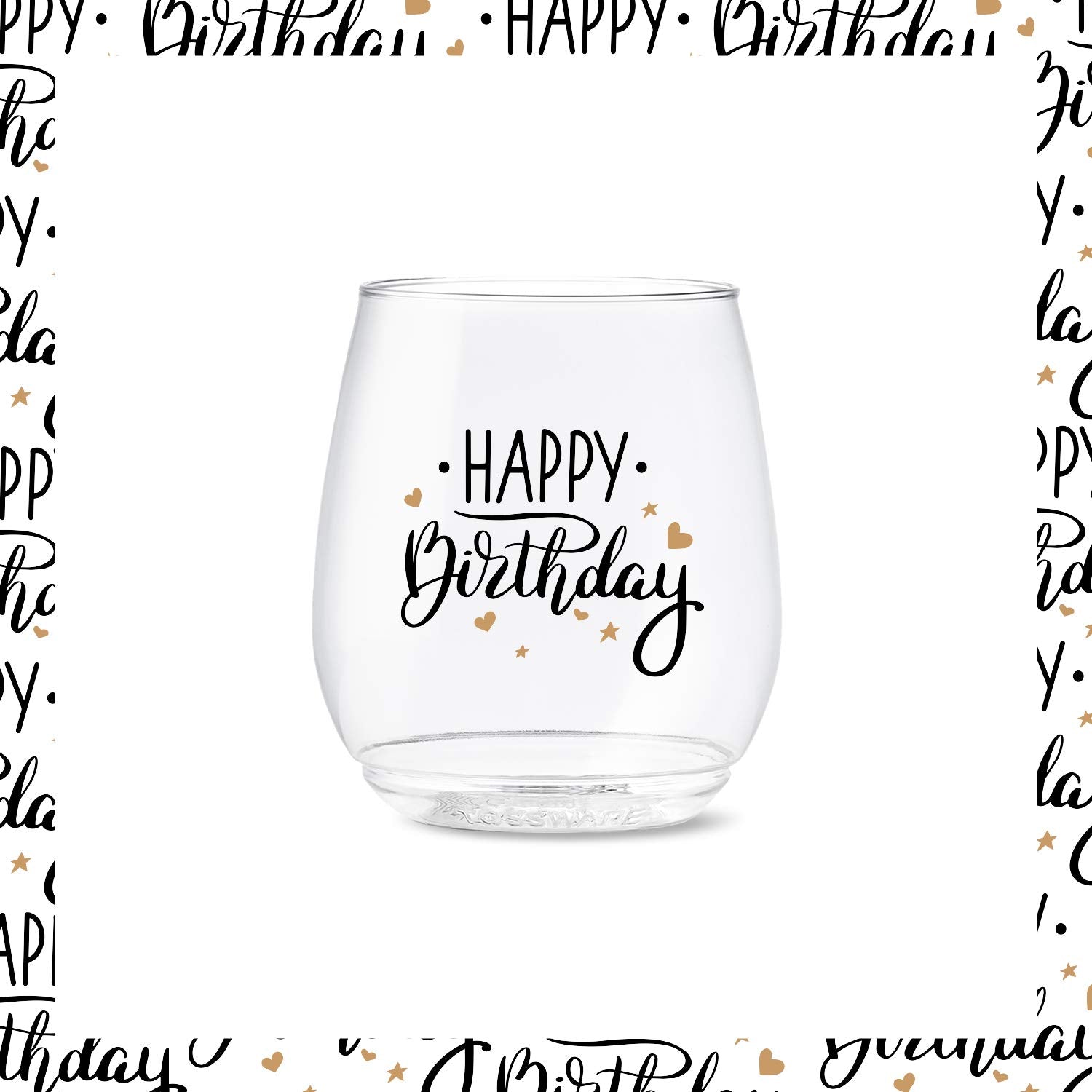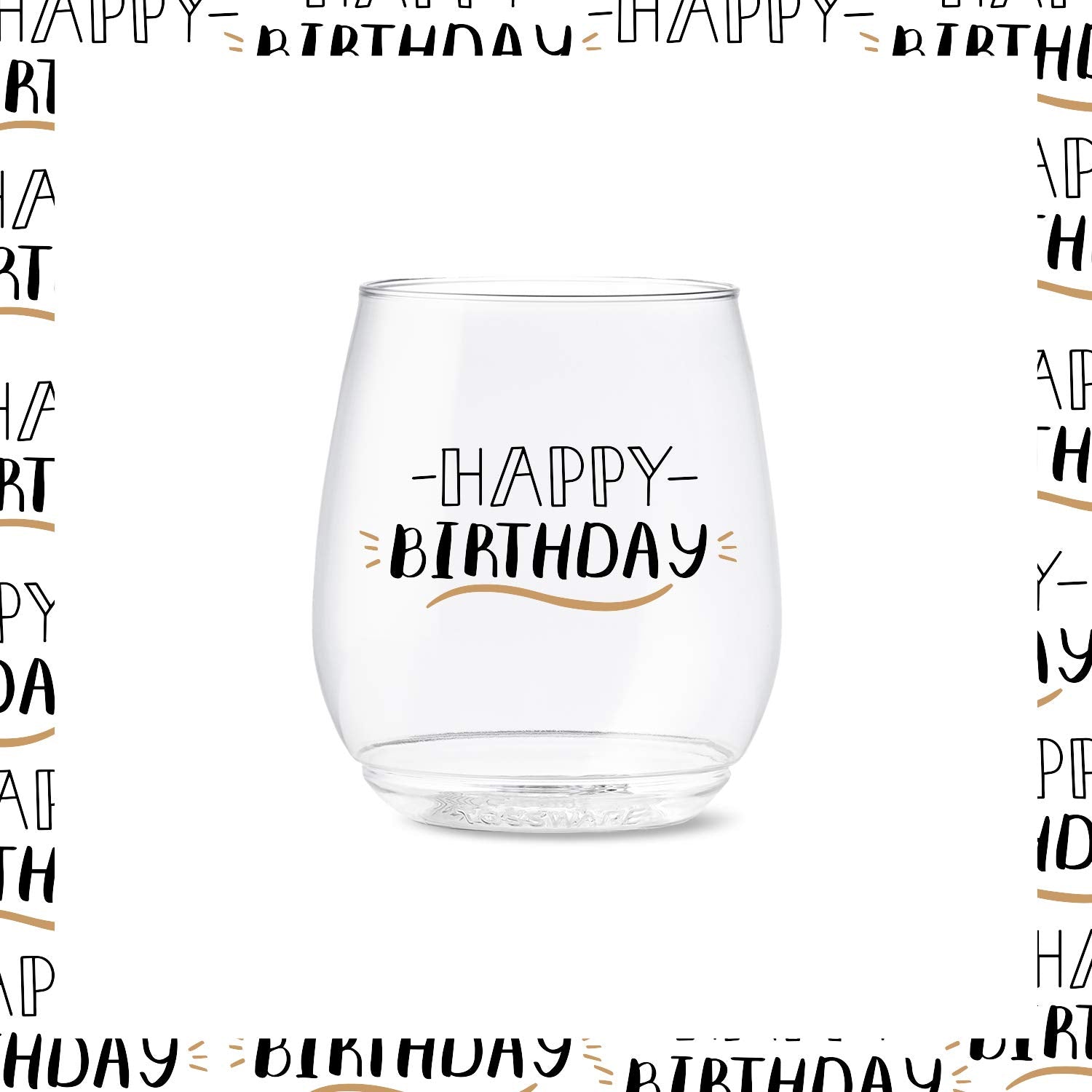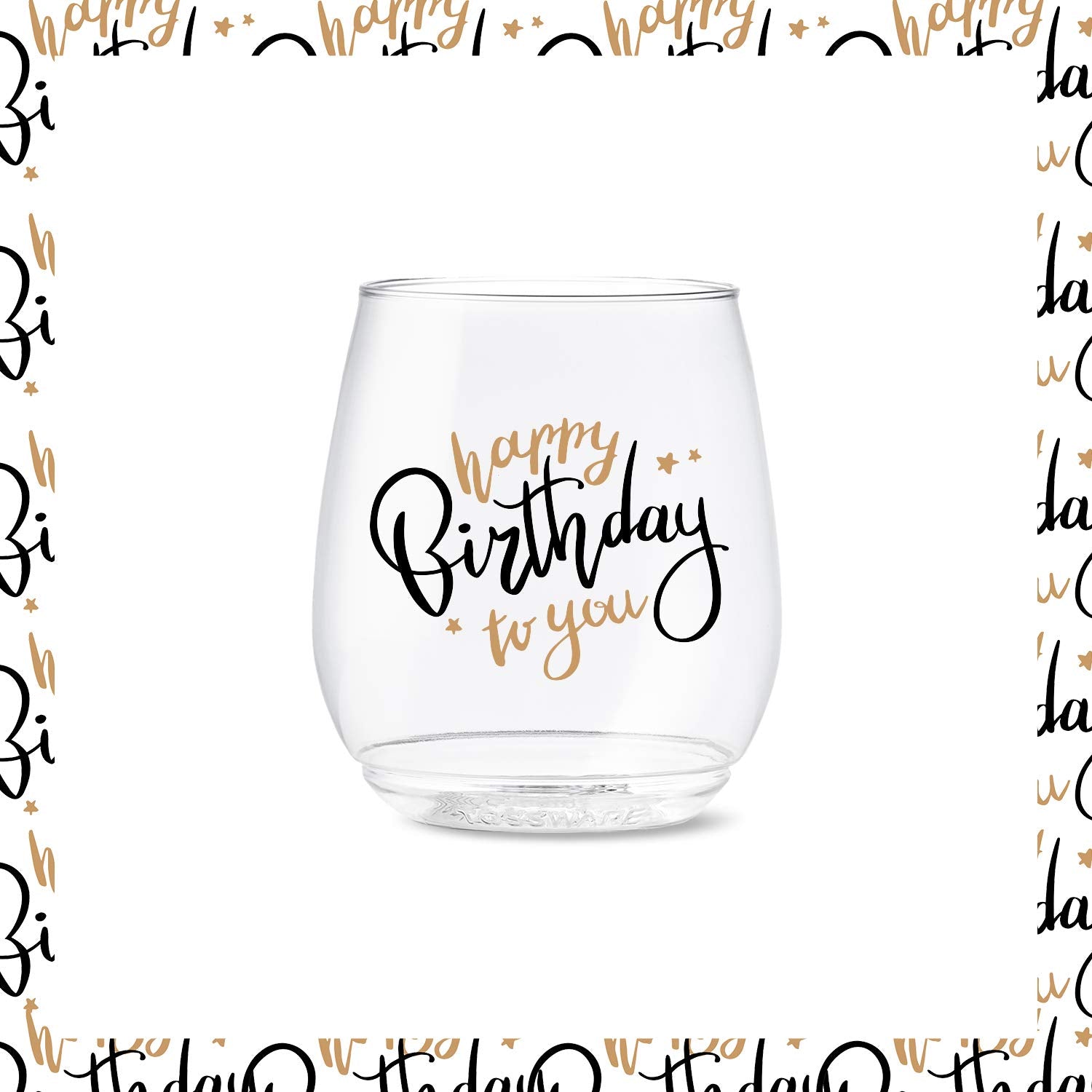 TOSSWARE POP 14oz Vino Golden Birthday Series, SET OF 6, Premium Quality, Recyclable, Unbreakable & Crystal Clear Plastic Printed Glasses
