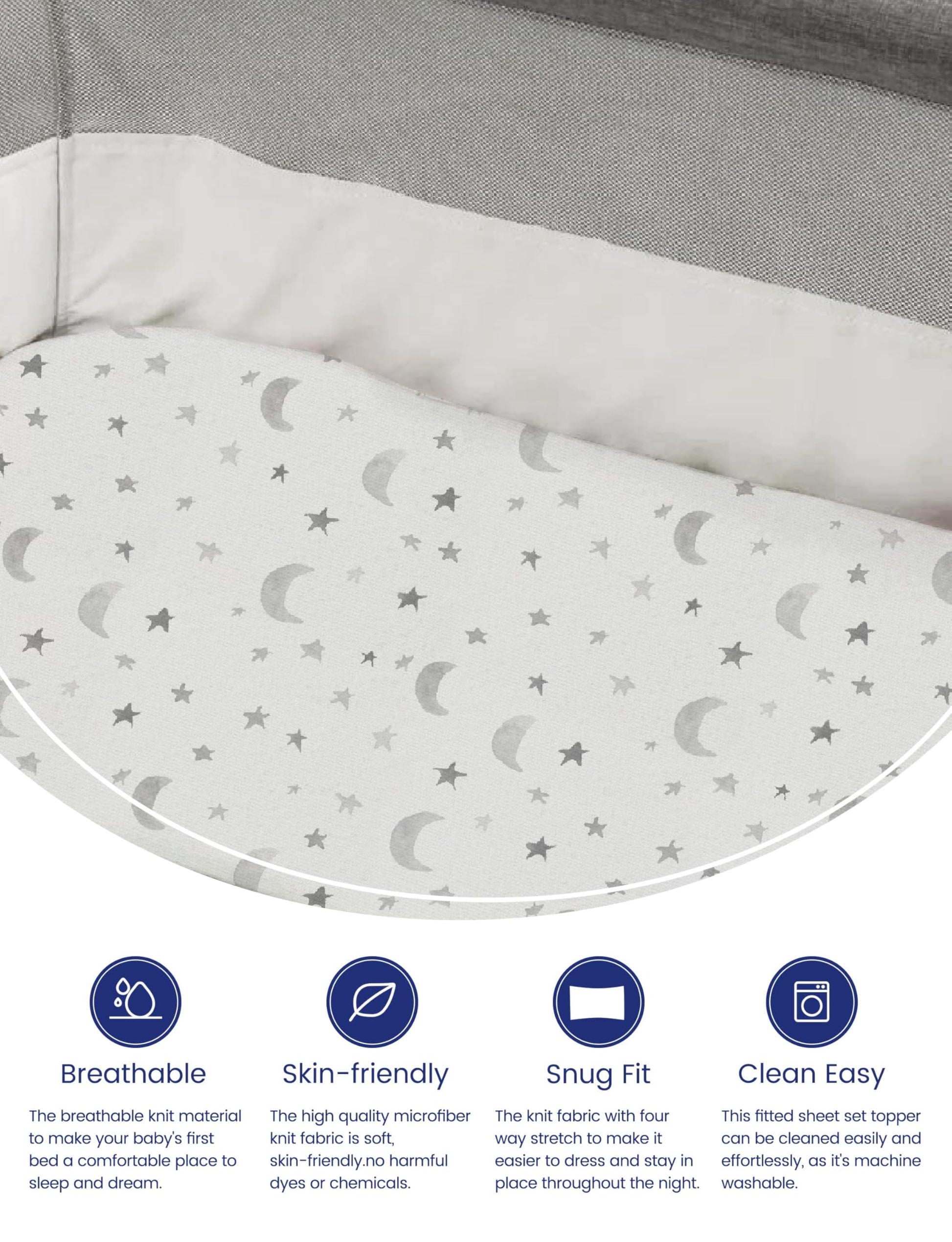 TotAha Premium Soft Pack n Play Sheets, Super Stretchy Jersey Knit Mini Crib Sheets Fitted, Silky Comfort Graco Pack and Play Mattress Sheets 2-Pack, Moon & Grey Sky