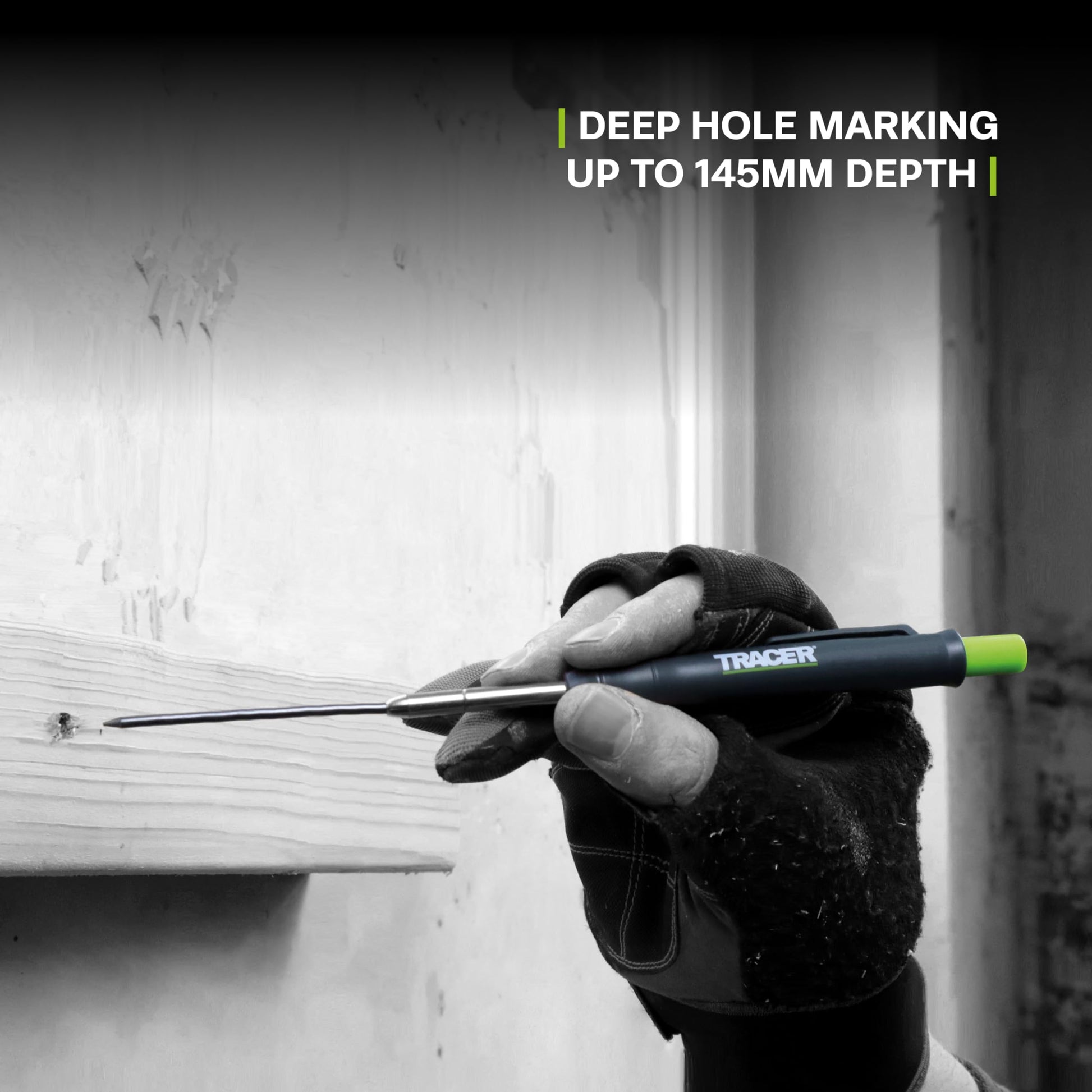 • Deep Hole Marking - Equipped with a 2B Lead that can be extended allowing for the user to mark depths of up to 5,7'. Perfect for marking small gaps and drill holes for other woodworking tools.
