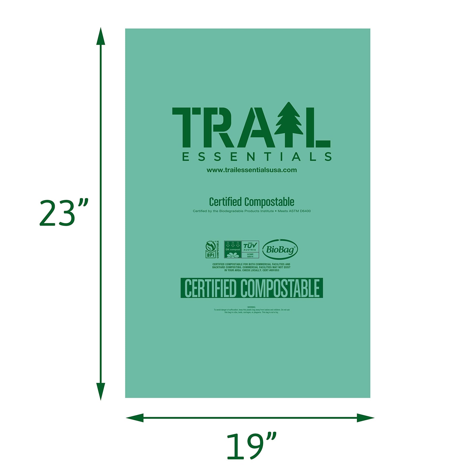 • ECO-FRIENDLY: 100% Biodegradable and Compostable. ASTM D6400 and VINCOTTE OK Compost Home Certified. Trail Essentials Toilet Bags are made from plant-derived resin, vegetable oils, and compostable polymers. Take care of our environment! To ensure compostability, bags are thin and have minimal resin added, which is why they are a transparent green color. Bags will begin to decompose naturally in soil within 10 days. Bags will begin to breakdown after contact with liquid; bury on day of use.