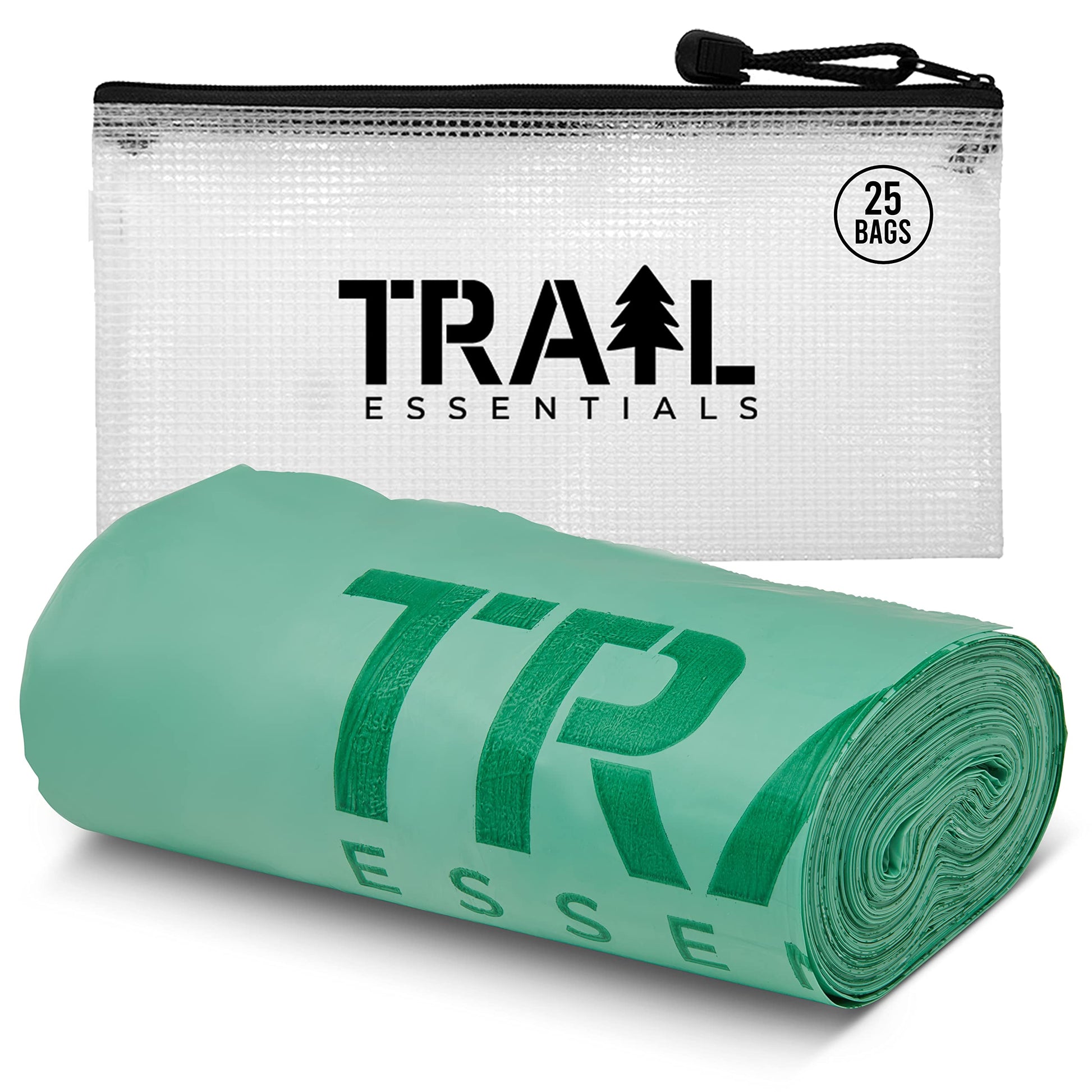 Trail Essentials 25 Count Biodegradable Toilet Bags, 5 Gallon Capacity, Convenient Carry Case
