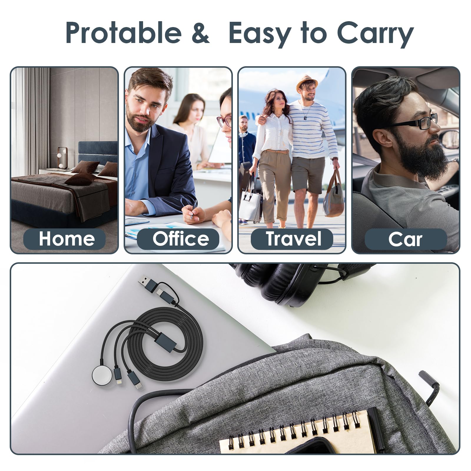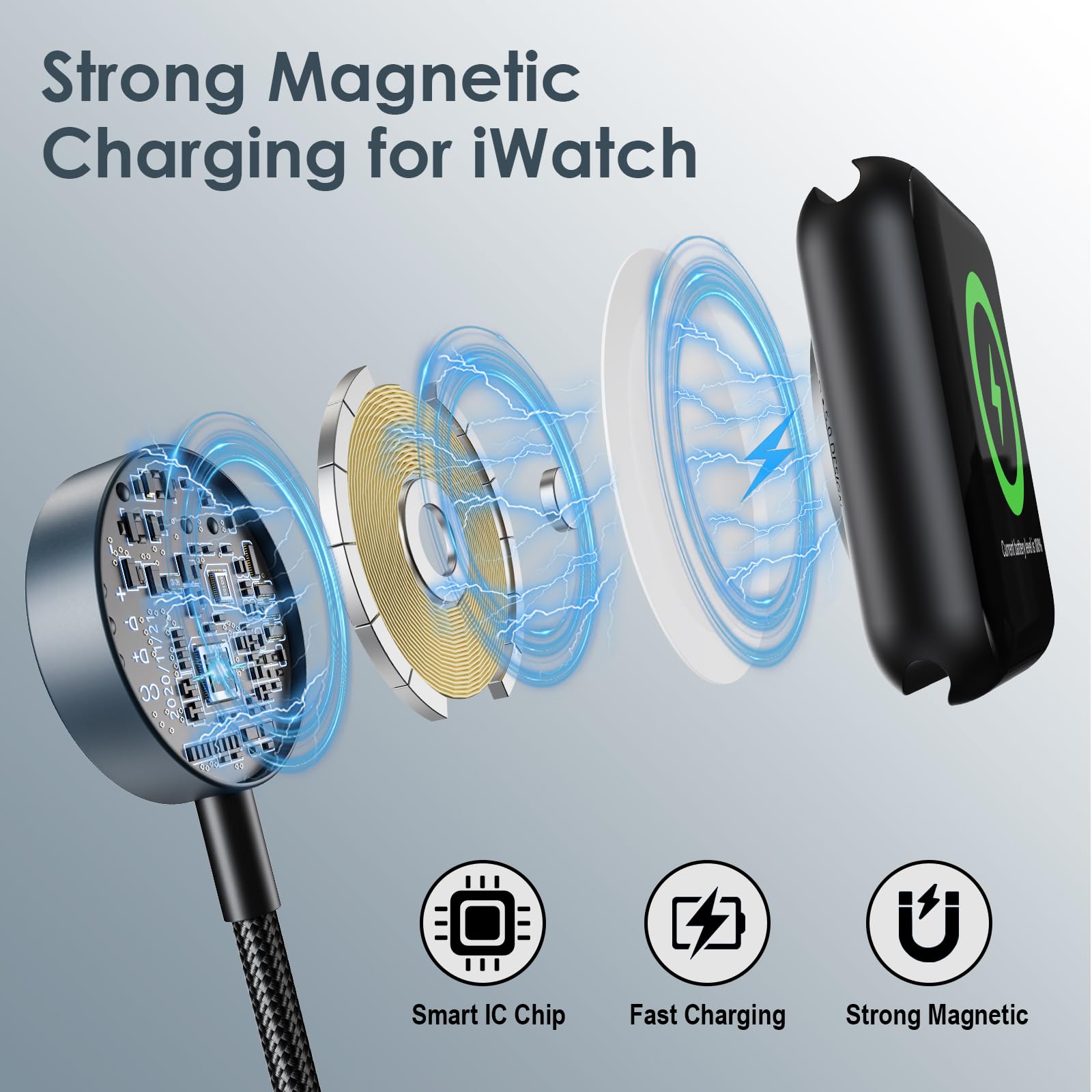 • 🎁Thoughtful Gifts & Car Accessories: This is a great gift for birthdays, Thanksgiving and Christmas.An essential accessory for AppL-e enthusiasts.It is the perfect present for anyone who owns both an Apple Watch and an iPhone, providing convenience and style in one package.Charging the whole family in the car requires such a cable.