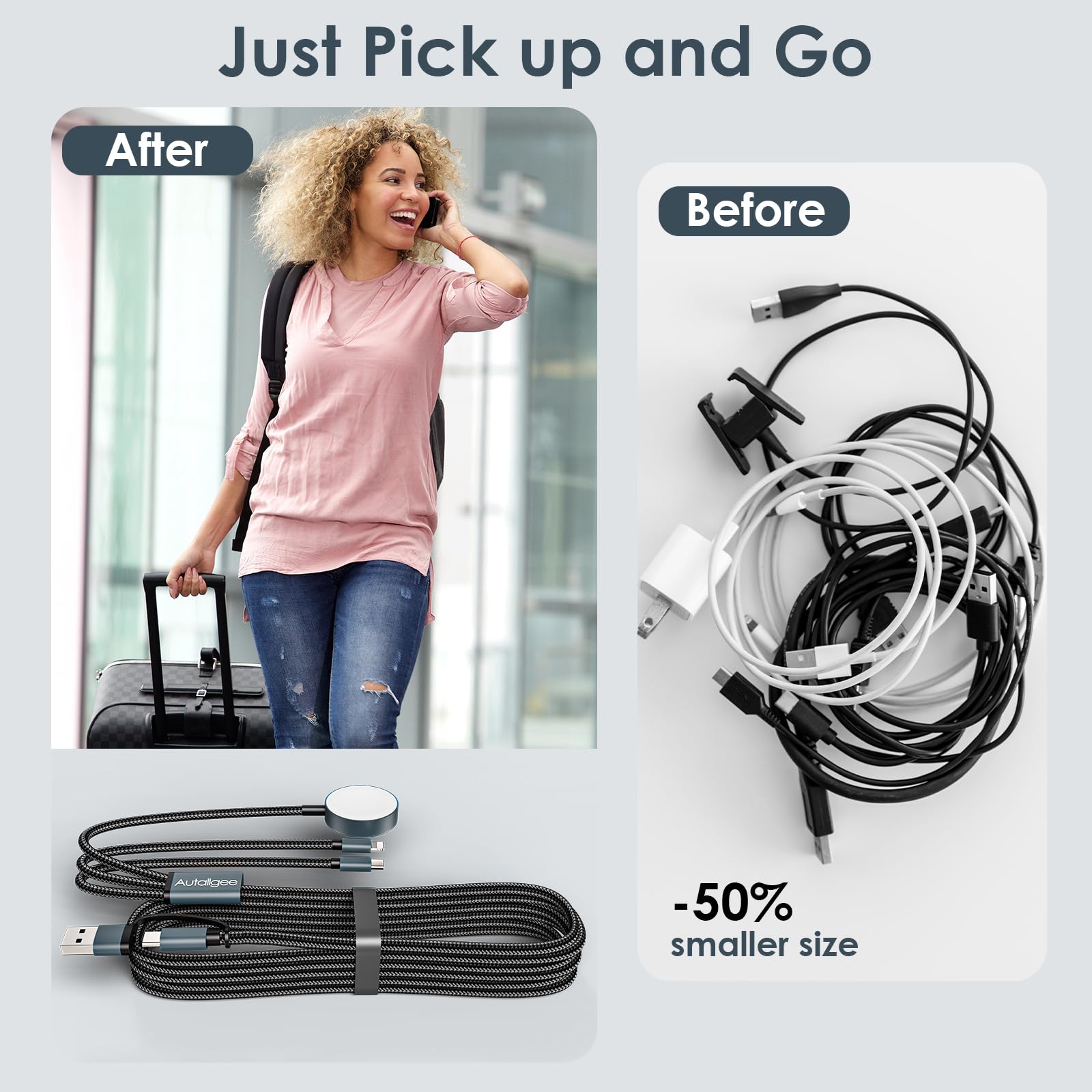 • 🎁Super 3 in 2 Multi-Function: Autallgee multi charging cable has 6 charging ways. What's remarkable is that it can charge three different devices simultaneously,Our multiple charger cord is compatible with iWatch Ultra 2/Ultra/SE 2/SE/Series 10/9/8/7/6/5/4/3/2/1,【Please note it doesn't support charge Samsung watch】iPhone 17/16/15/14/13/12/11/8/7 Pro/Max/Plus/AirPods 4/Pro 2, Samsung Galaxy S24/S24+/S24 Ultra/S23/S22/S21/S20.