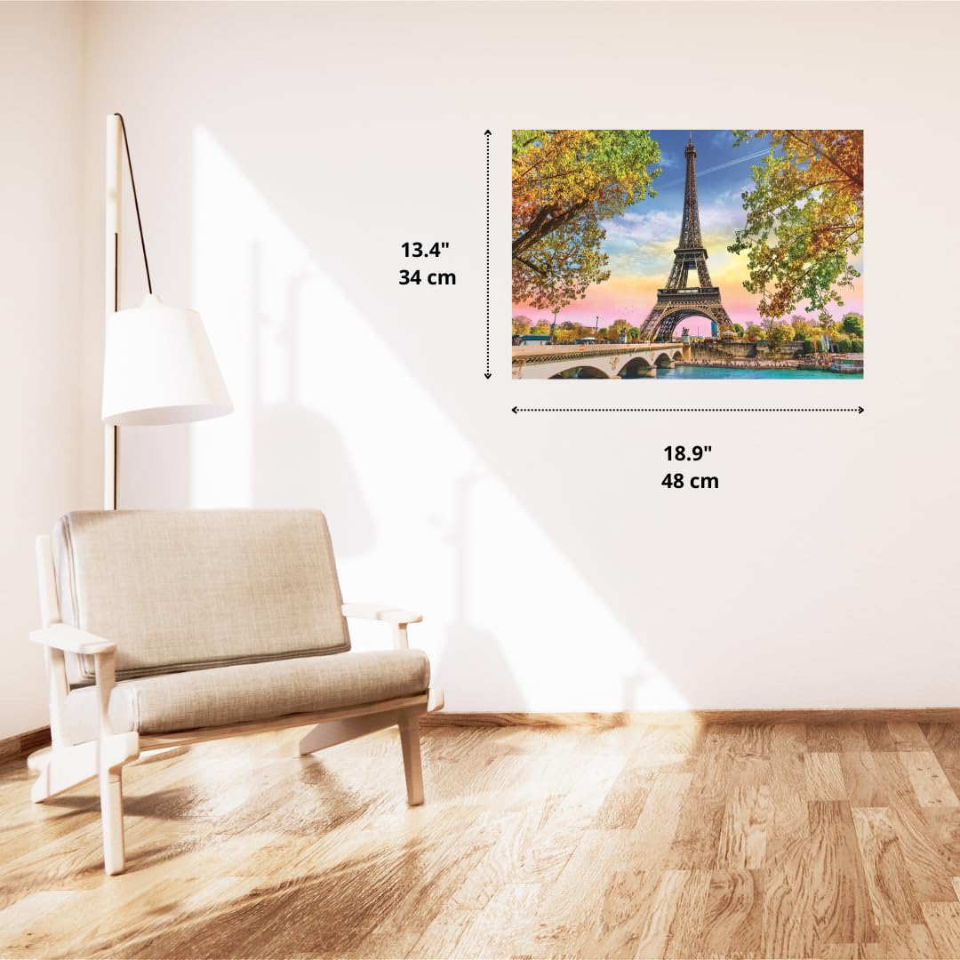 Details: Piece together this 500 piece city view jigsaw puzzle of a beautiful romantic Paris in autumn. We create for young adults, their parents and grandparents. Piecing together jigsaw puzzles is a perfect way of having a great time together with the family and friends. It strengthens interpersonal ties, provides relaxation, enhances powers of observation, concentration as well as precision. We have been manufacturing our jigsaw puzzles since 1985. Thanks to our experience and constantly increasing catalog, we have become one of the most recognized puzzle brands, both in Europe and worldwide. Our high-quality materials and state-of-the-art machinery provide premium quality products. Premium quality is achieved by using appropriate thick cardboard, a special non-reflective layer, and puzzle pieces that fit together perfectly.