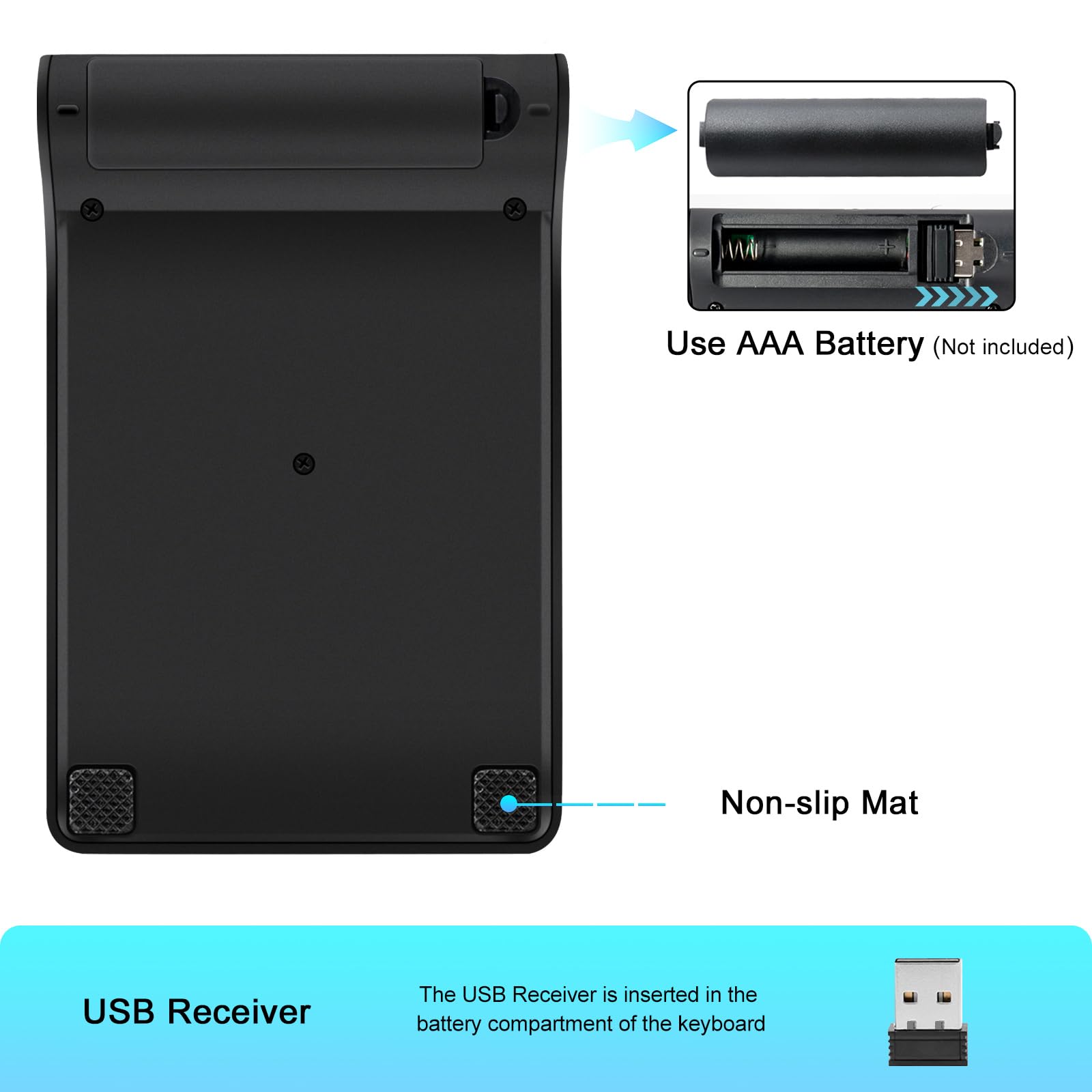 • 2.4GHz WIRELESS CONNECTION - Using advanced 2.4GHz wireless technology, plug and play, no additional drivers required. Signal transmission stability, working range up to 33ft. (The USB Receiver is inserted in the battery compartment of the keyboard.)