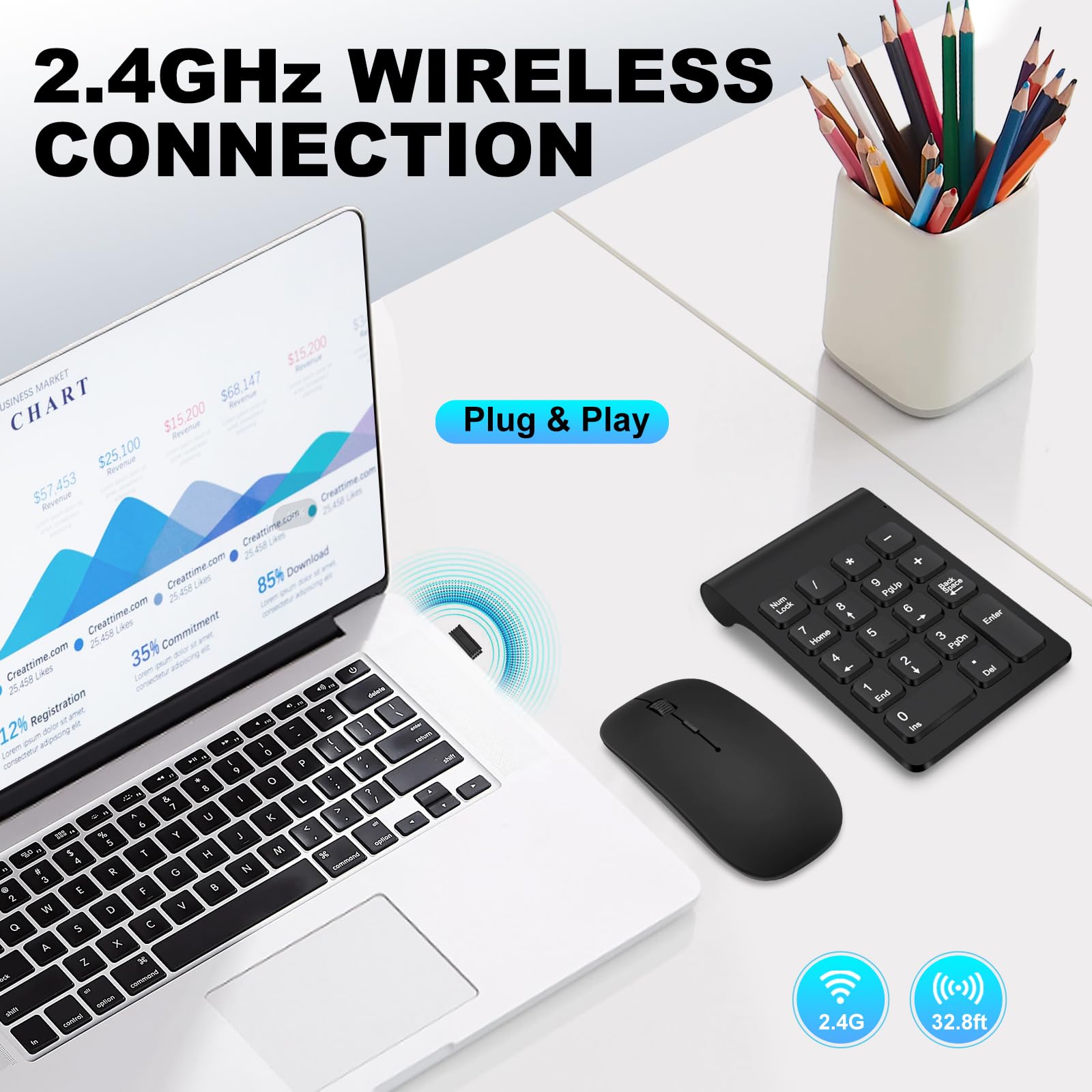 TRELC Wireless Numeric Keypad, Mini 2.4G 18 Keys Number Pad, Portable Silent Financial Accounting Numeric Keypad Keyboard Extensions with Wireless Mouse for Laptop, PC, Desktop, Notebook(Black)