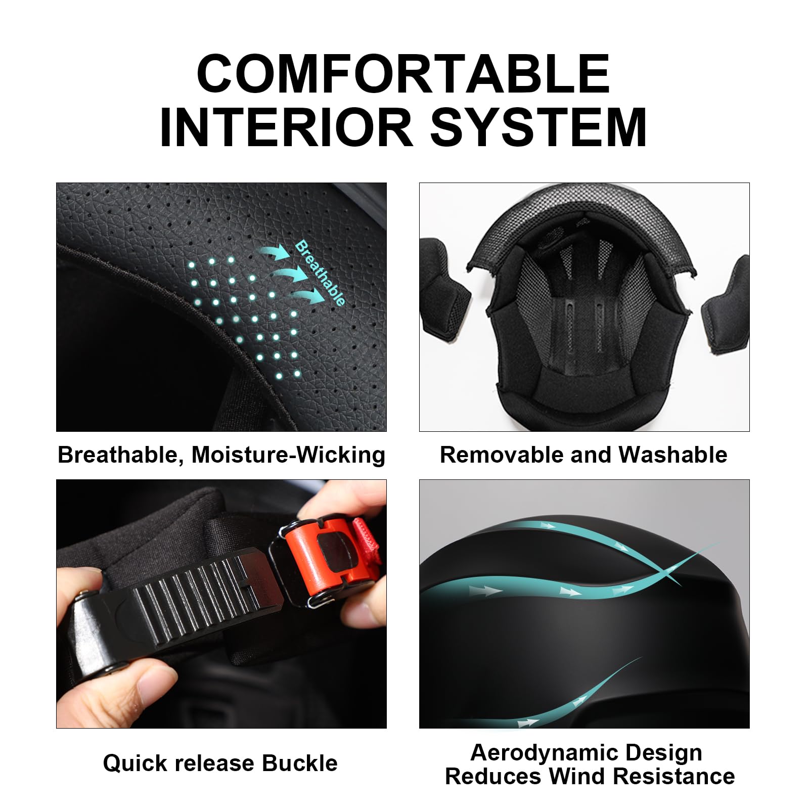 • Multiple ventilation system: the full face motorcycle helmet has 4 well-designed vents at the chin, top and back to optimise airflow