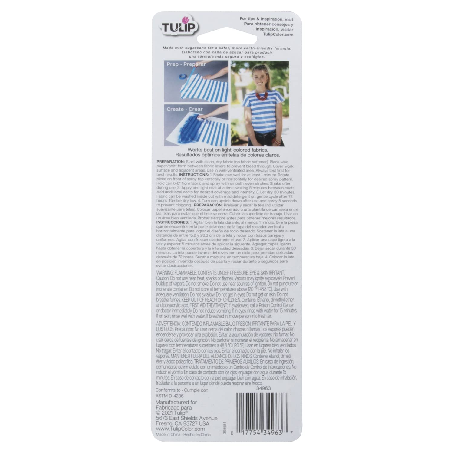 Details: Give your fabrics an instant shot of beautiful, washable, permanent color with Tulip ColorShot Instant Fabric Color. It’s perfect for a dash of color or for allover even coverage, and works wonderfully with stencils and monograms! ColorShot is so easy to use … just shake, aim and spray for gorgeous color in classic, neon and shimmer shades that dry super quick and soft to the touch, without drips or splatters. And it is so easy to blend colors, too! So when your apparel and home décor fabrics need a color renew, refresh or redo, add maximum color appeal with Tulip ColorShot Instant Fabric Color! Give your fabrics an instant shot of beautiful color with this easy to use fabric spray paint!