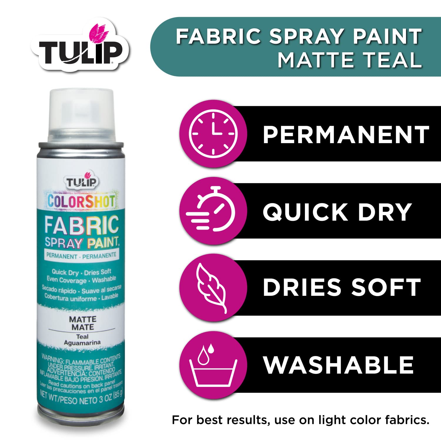 • Spray paint for fabric. Aerosol Fabric Spray available in a 3-oz. spray can. Works great on natural and synthetic fabrics. Perfect for all over color or using with stencils