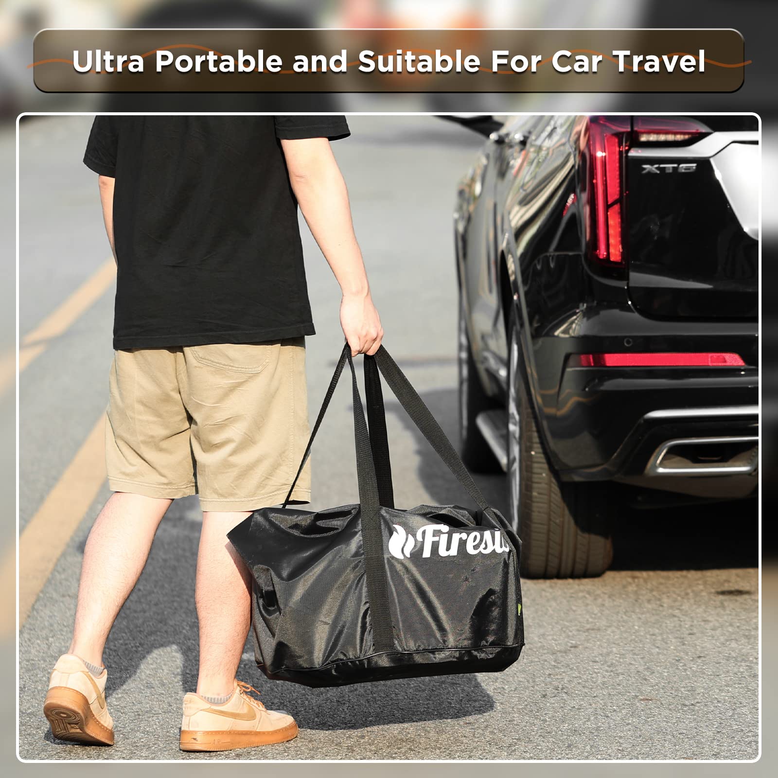 • Foldable Legs: Open the legs for a safe distance from the fire pit to the ground to protect the wood floor from overheating when used; fold up the legs for increased stability on uneven surfaces