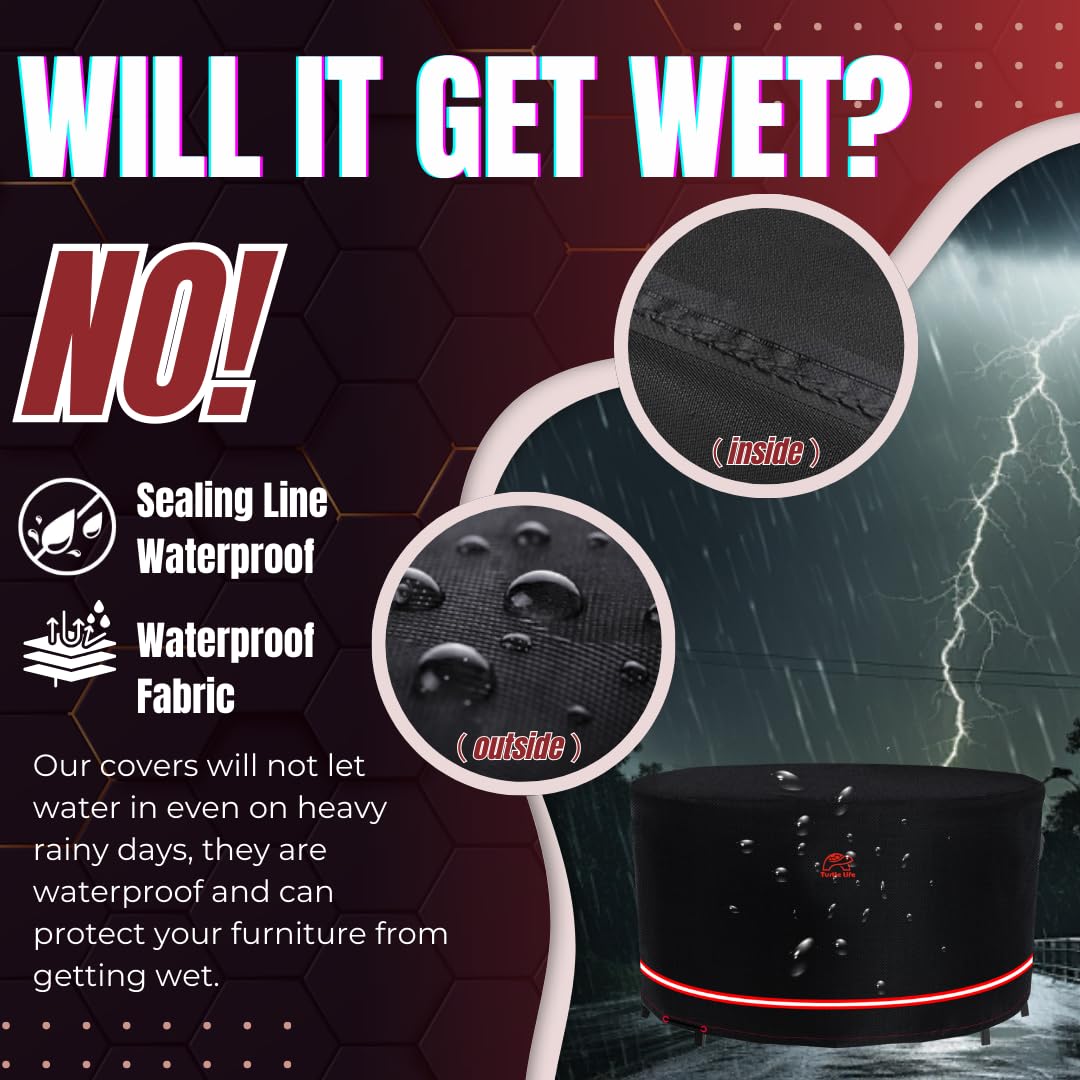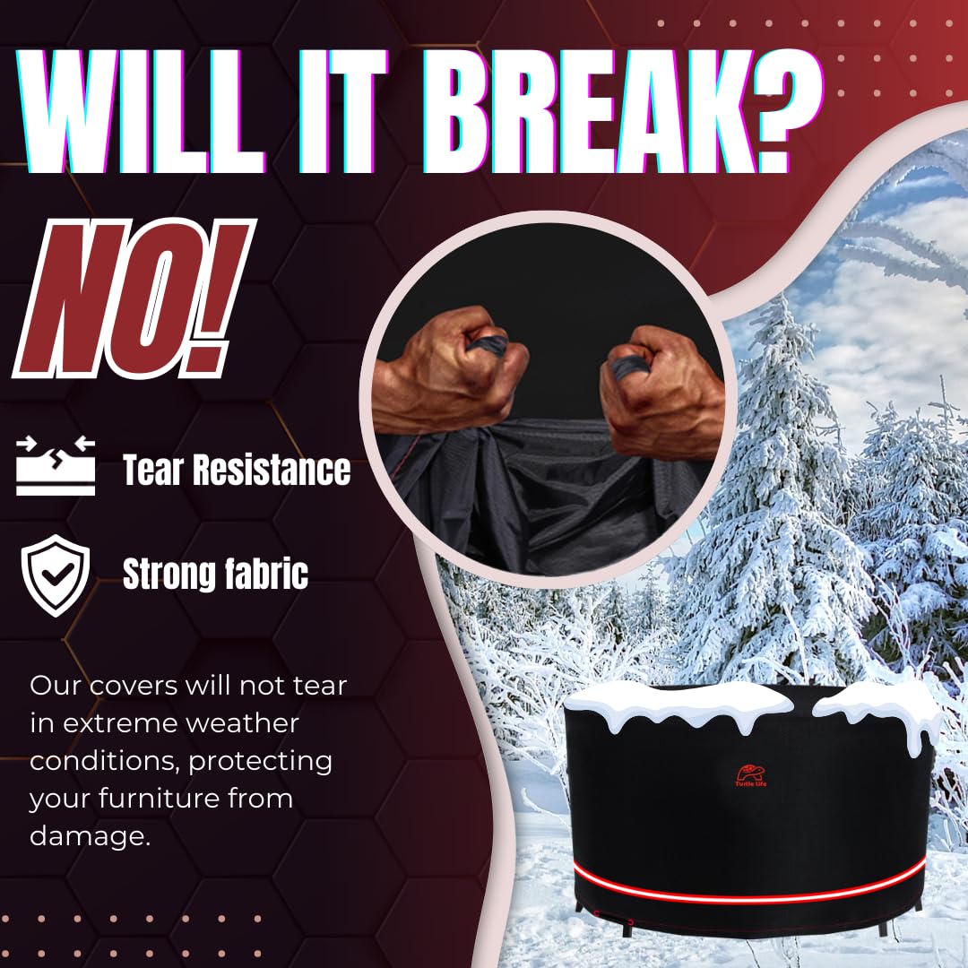 Turtle Life Patio Furniture Sets Cover, Heavry Duty Round Outdoor Dinning Table and Chairs Cover, Anti-Fading Cover for Outdoor Furniture Set, Black, Dia 80" x 35" H