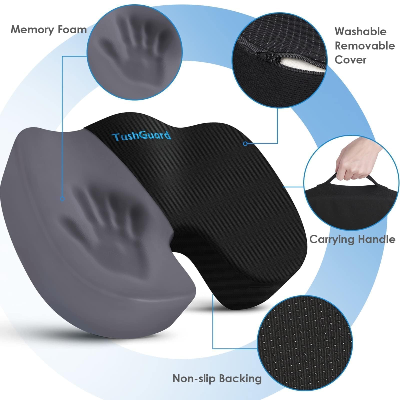 TushGuard Seat Cushion for Office Chair Memory Foam Non-Slip Desk Seat Cushion Back, Coccyx, Sciatica, Tailbone Pain Relief Butt Pillow for Office Chair, Car, Wheelchair, Black
