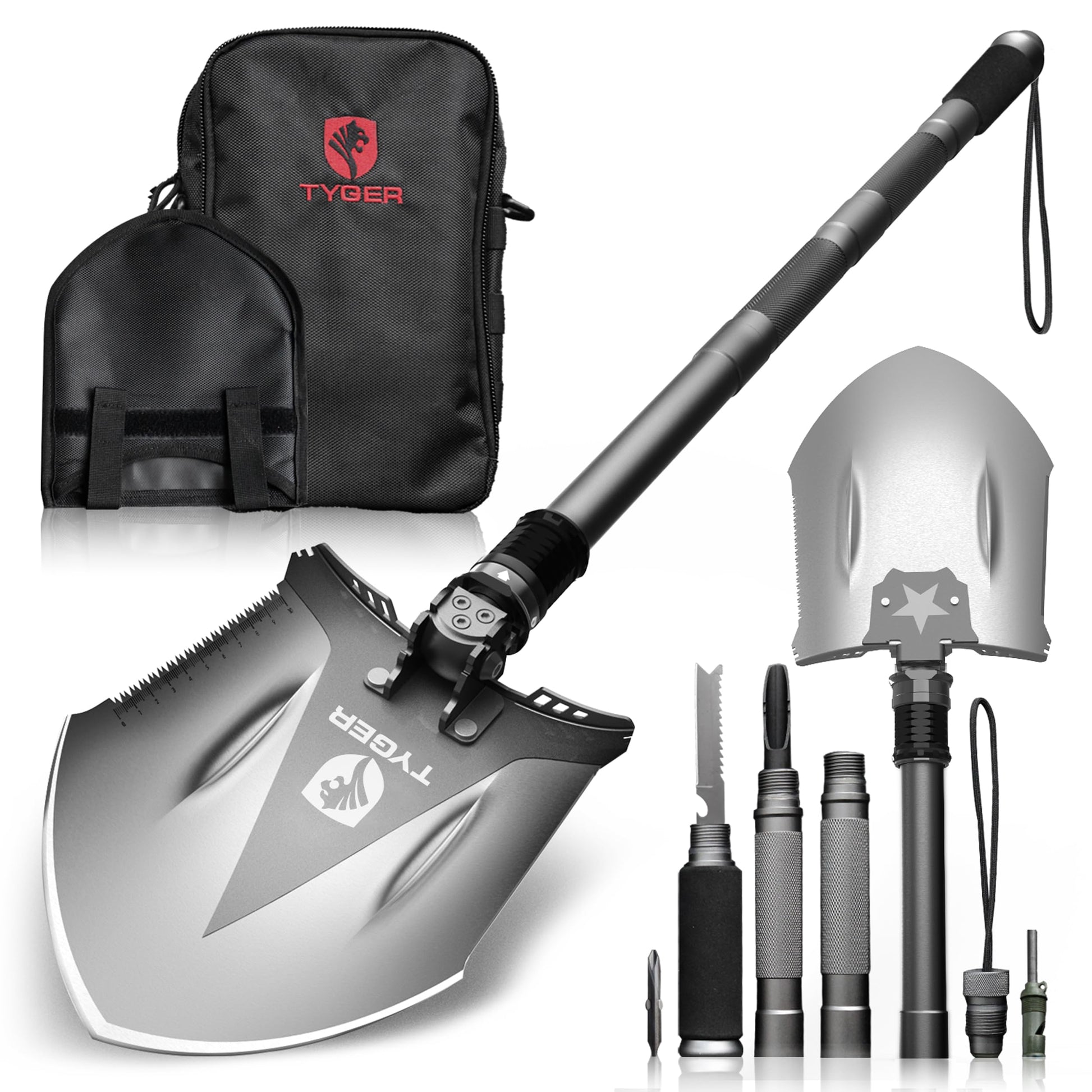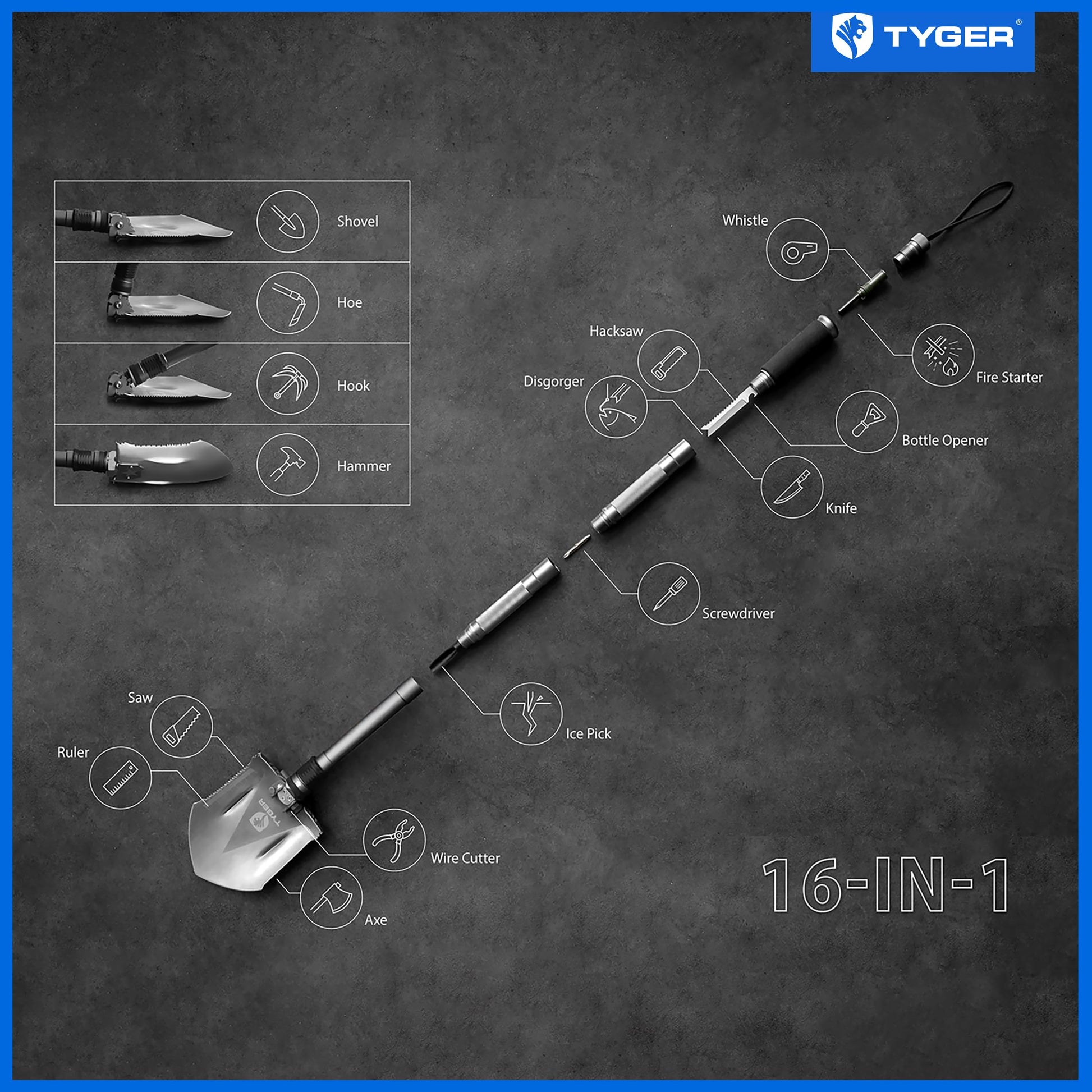 Tyger Auto Folding Shovel TG-SV8U3217 Military Heavy Duty Survival Shovel 16-in-1 Multitool Compact Camp Shovel with Bag for Camping, Hiking, Off-Roading, Outdoor, Tactical, Emergency