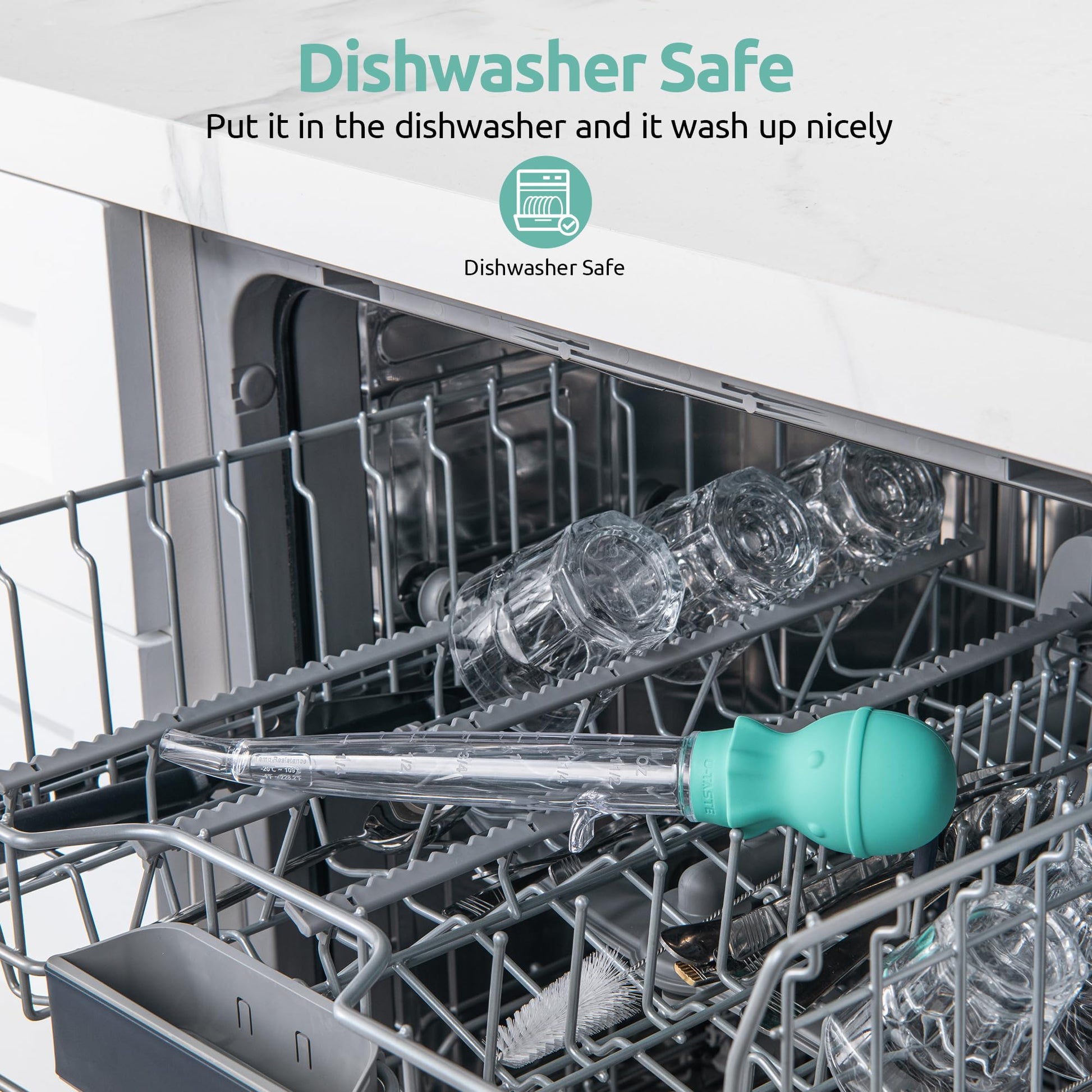 • [Dishwasher Safe and Attached Cleaning Brush] The cute octopus shape bulb is not just for a decoration purpose, but also a representative of its suction ability. A press on its bulb, you can see how much liquid drawn into the tube by checking the engraved ML and OZ measurements. It can go right in the dishwasher and still come out good. Enclosed a long (22cm/8.66in) cleaning brush helps to clean thoroughly if you decide to hand wash it and the smooth tip on the top will not scrape your baster.