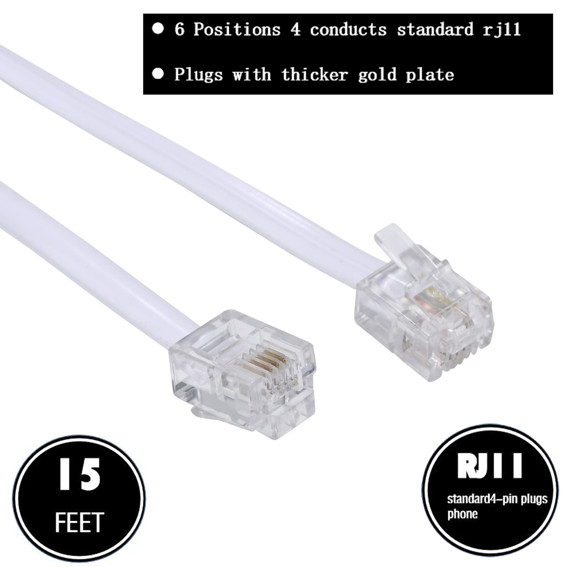 • [Wide Application] 6p4c connector.This telephone cords for landline phone comes with two RJ11 standard phone connectors on both ends and 1 inline coupler, which can be used for telephones, fax machines, modems, answering machines, etc