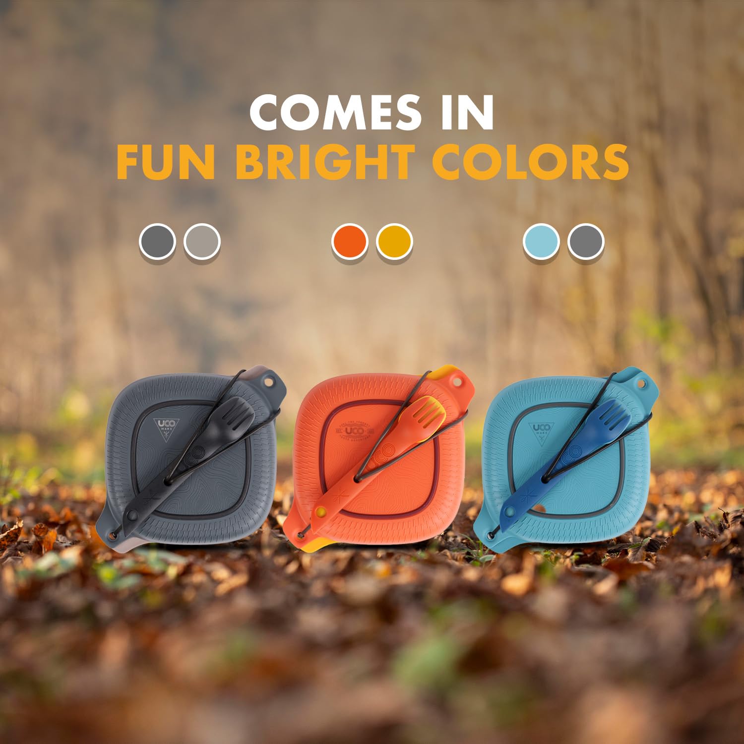 Details: Make and take meals on the go with the UCO 6-Piece camping cooking set. Includes a plate, bowl, cup, a Switch Spork utensil, and 1 bungee tether. Both the bowl and the plate have rubberized grips on the bottom that ensure your camping cooking gear stays put. The spork is contoured to match the inside of the bowl and plate, making it easy to get every last crumb or drop of soup. When it comes time to pack up, the foldable cup nests inside the bowl and plate, which connect to form an airtight seal and the included stretch tether secures the spork to the kit.