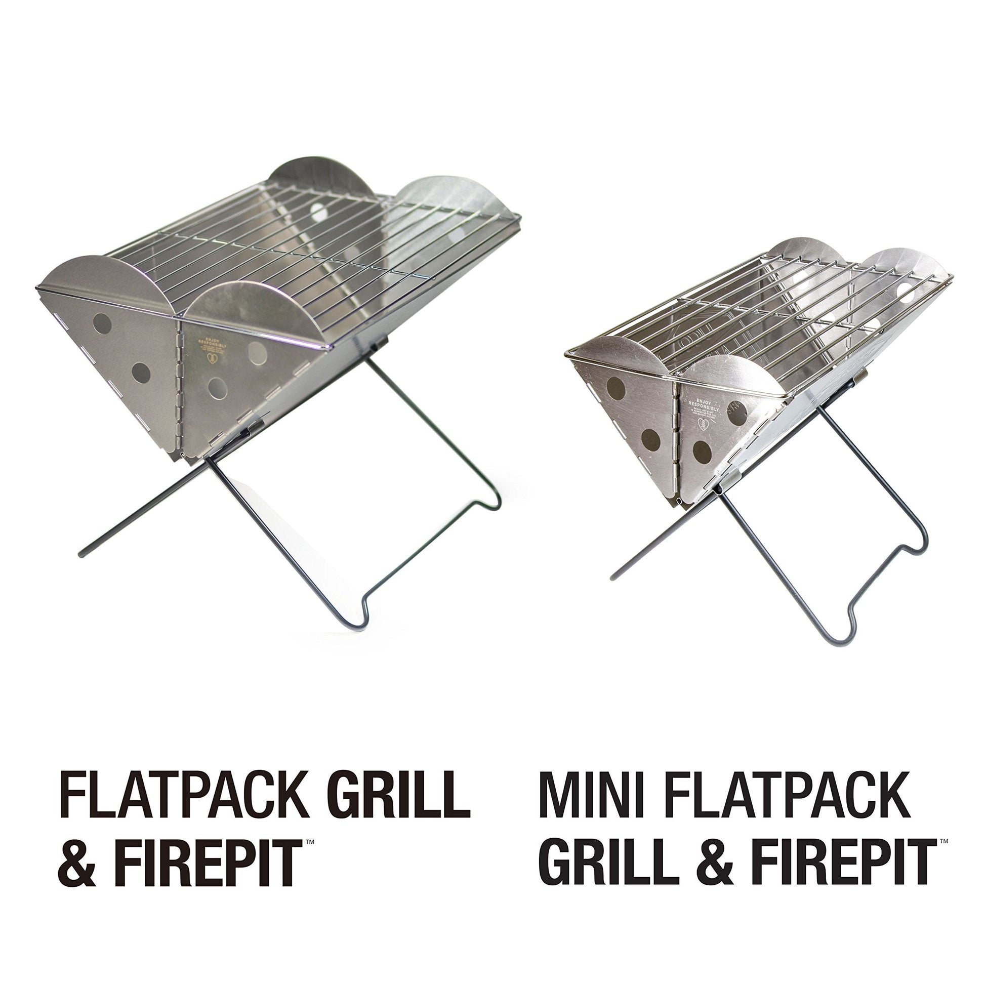 • Stainless steel grill folds to 1.5 inches thick and fits in a backpack; can be used as a fire pit; comes in regular or mini sizes (sold separately)