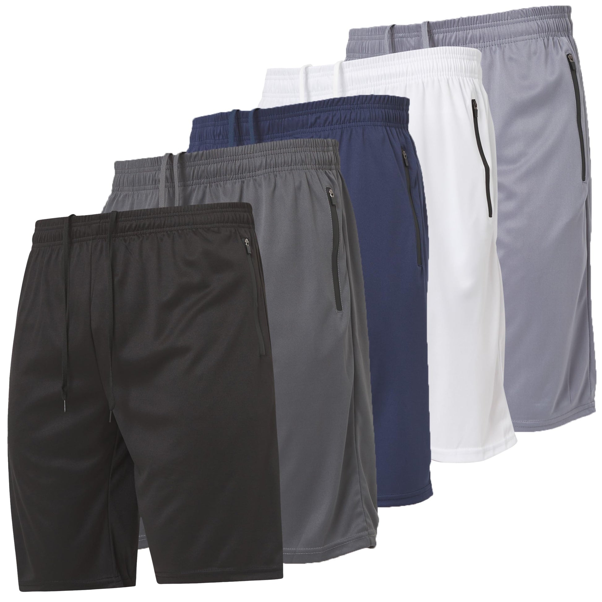 • Our workout shorts for men come in 5 styles; Dry Fit Mens sport shorts with Rubber Zip PKTS in Inseam, Solid Marled Dry Fit Running Shorts with Rubber Zip PKTS in Inseam, Marled Dry Fit Athletic Shorts with Rubber Zip PKTS in Inseam, Dry Fit Men's Shorts with Printed Side Panel & Rubber Zipper Pocket , Printed Marble Dry Fit Black Solid Work Out Shorts with Rubber Zippered Pockets & Dry Fit ASST Black Pack with Rubber Zipper Pocket