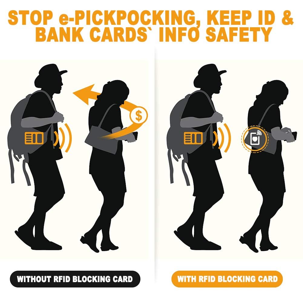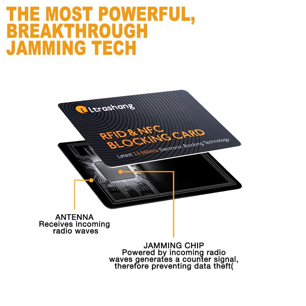 • BREADTHOUTH JAMMING TECH, KEEP YOUR PRIVACY & FINANCIAL INFO SAFE - A vital addition to anyone in nowadays. The blocking card adopts LASTEST 13.56MHz electronic blocking technology, when upon scanning, it will draw energy from the reader and emit an interferential signal to jam the transaction or hack. It creates a 6cm radius field, prevent skimming from your contactless device, so all your money and privacy info of bank cards, passport, driver license are safety