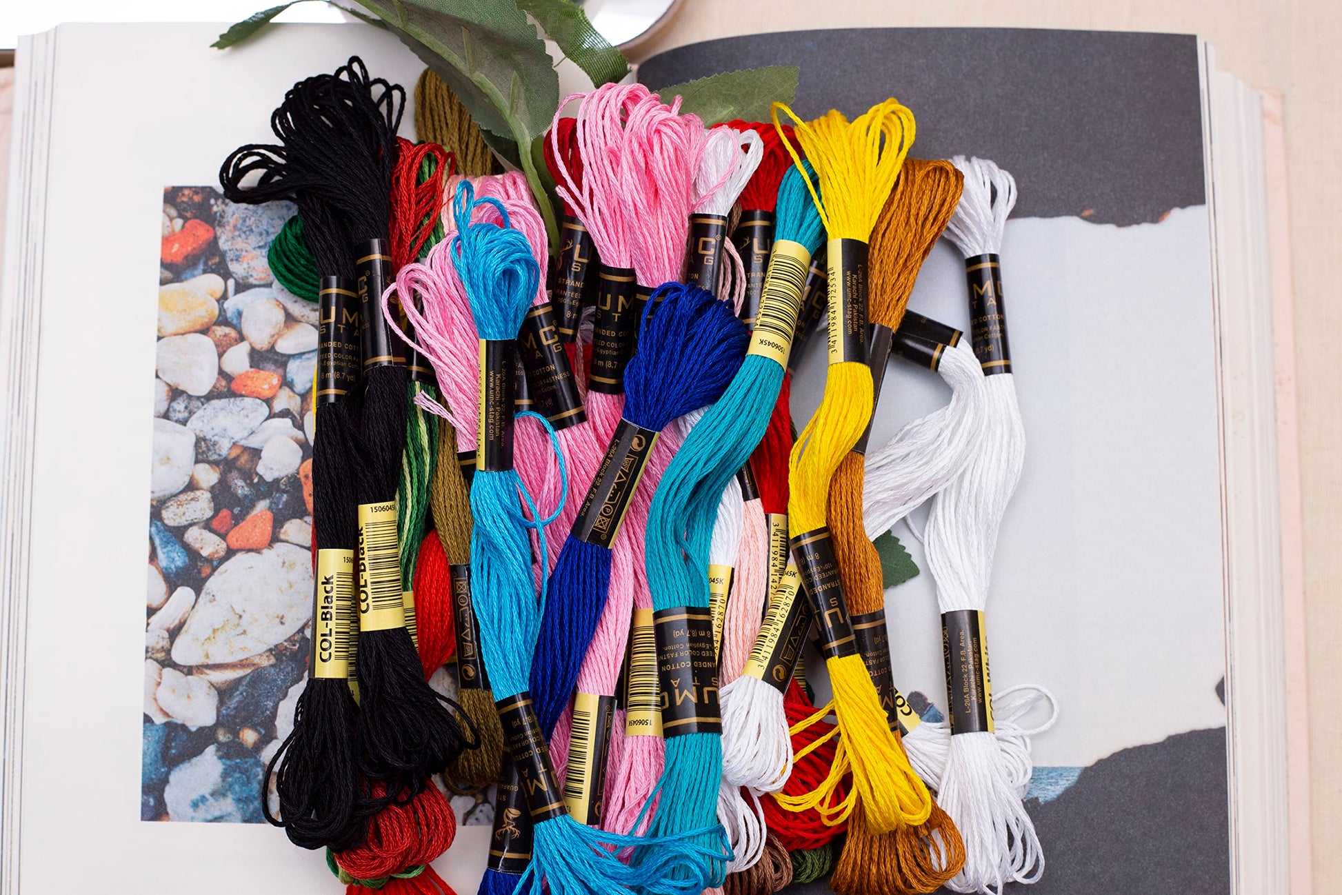 Convenient Packaging: Hand sewing thread is about 8.75 yards long and each skein of embroidery floss comes in 6 threads. Each Floss is tightly packed, just find the line head, pull it upright without having to tear the wrapping paper. Packaging keeps strings from falling apart and makes it easy to use the product.